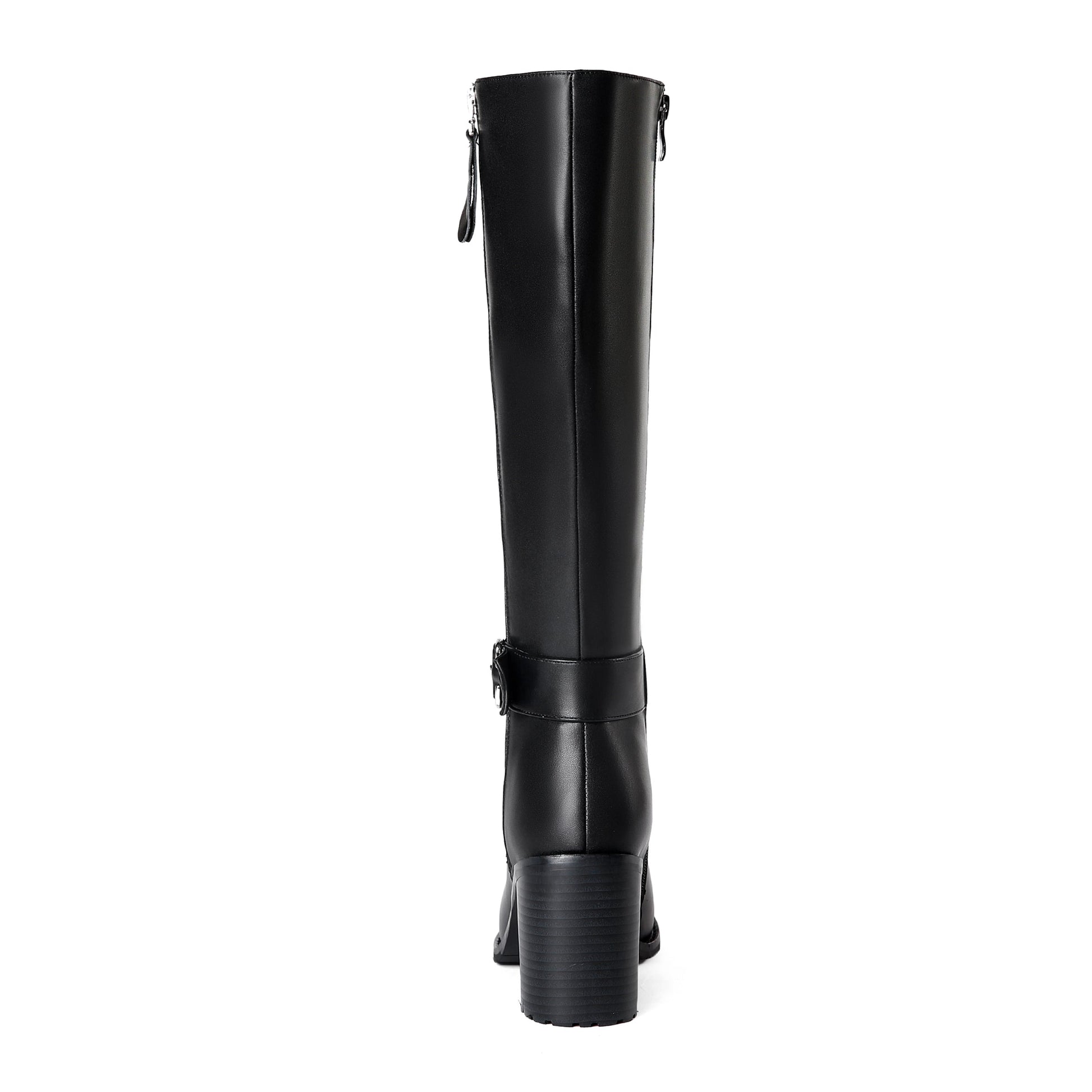Nine Seven Women's Genuine Leather Round Toe Handmade Buckled Dual Zippers High Chunky Heels Stylish Knee High Boots