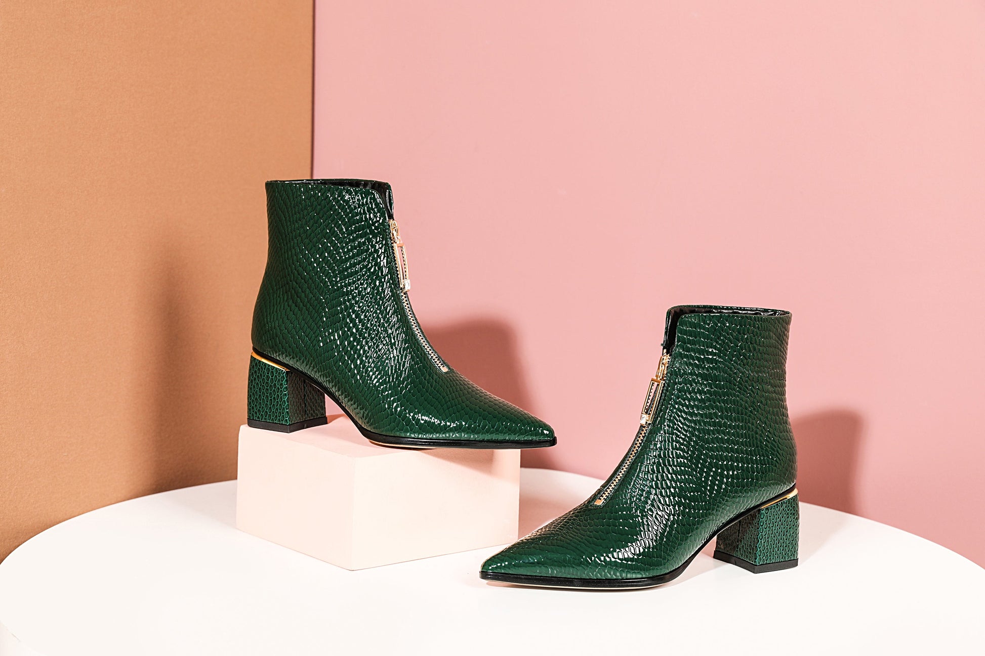 Classic ankle boots are designed with genuine leather, pointed toe, zipper and mid chunky heels.style are quite versatile.
