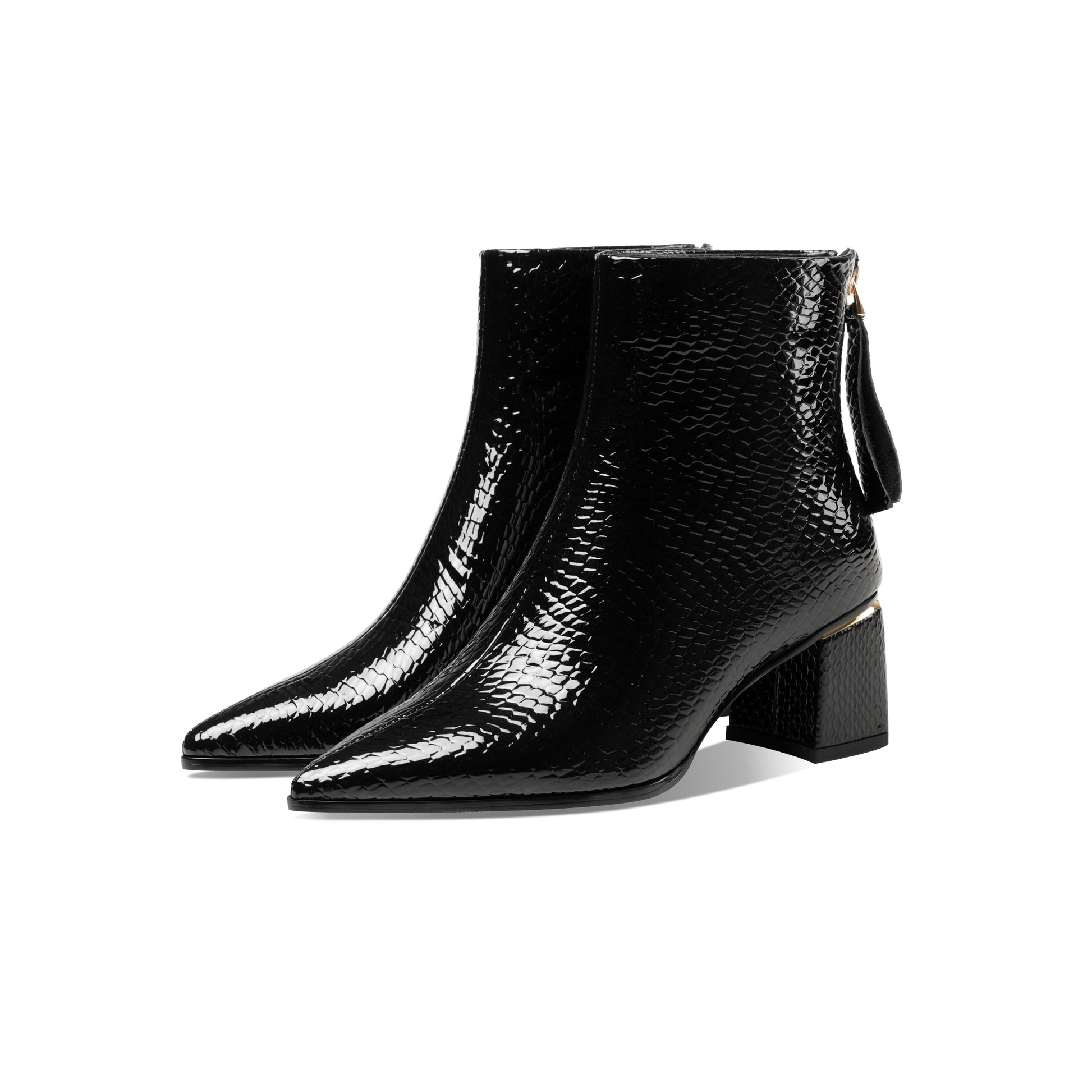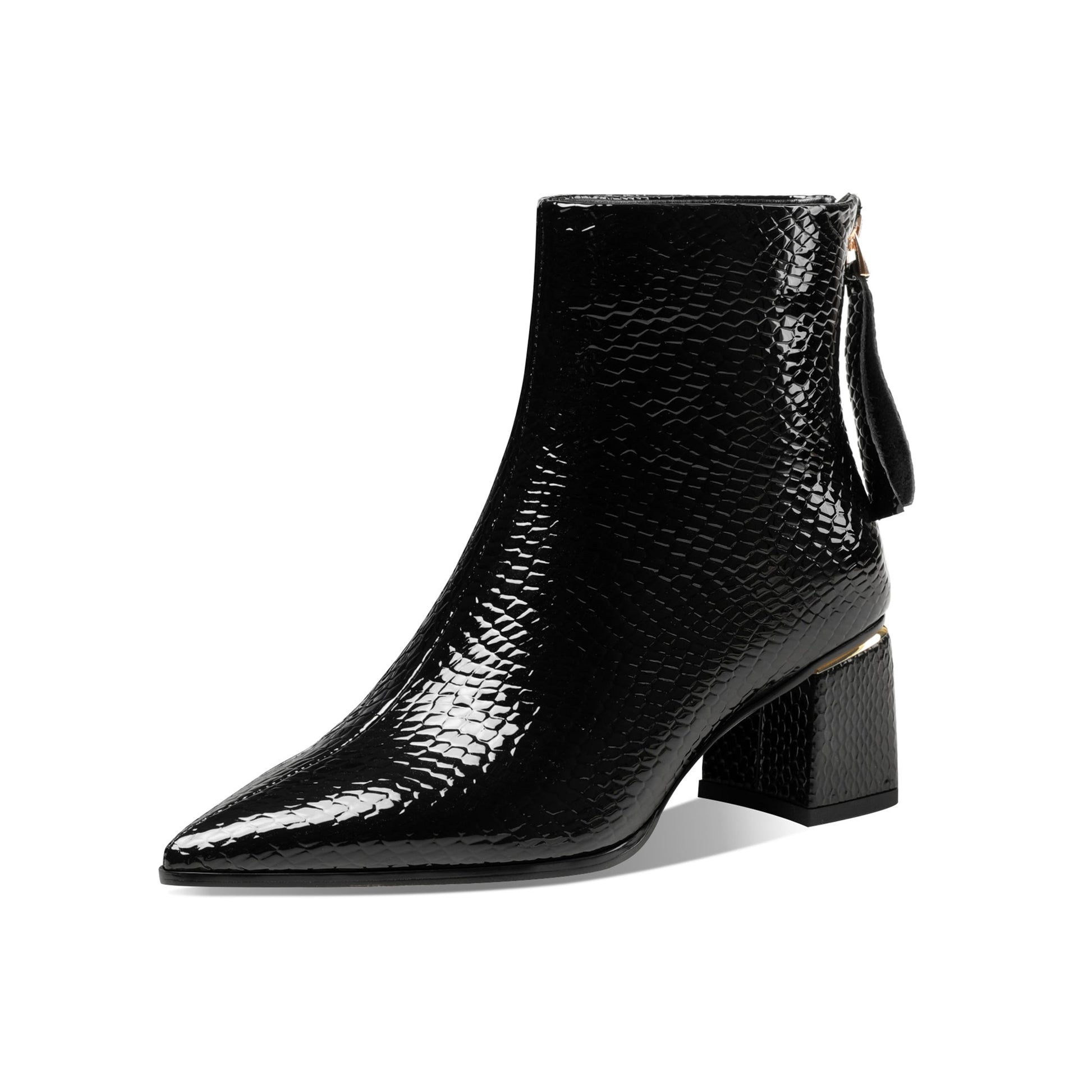 These ankle booties are designed with genuine leather, pointed toe and mid chunky heels.Slip-resistant sole could show your confidence in every step.