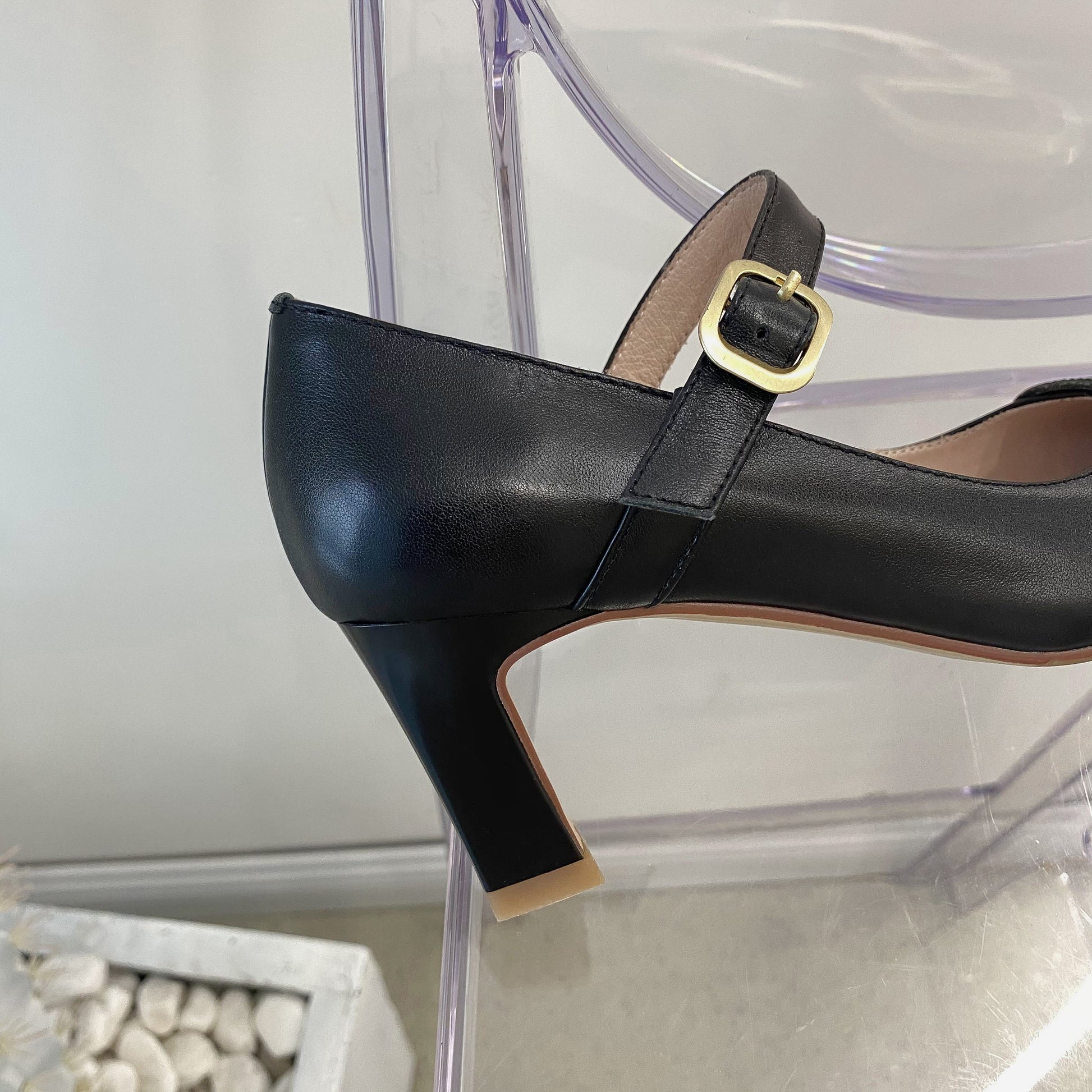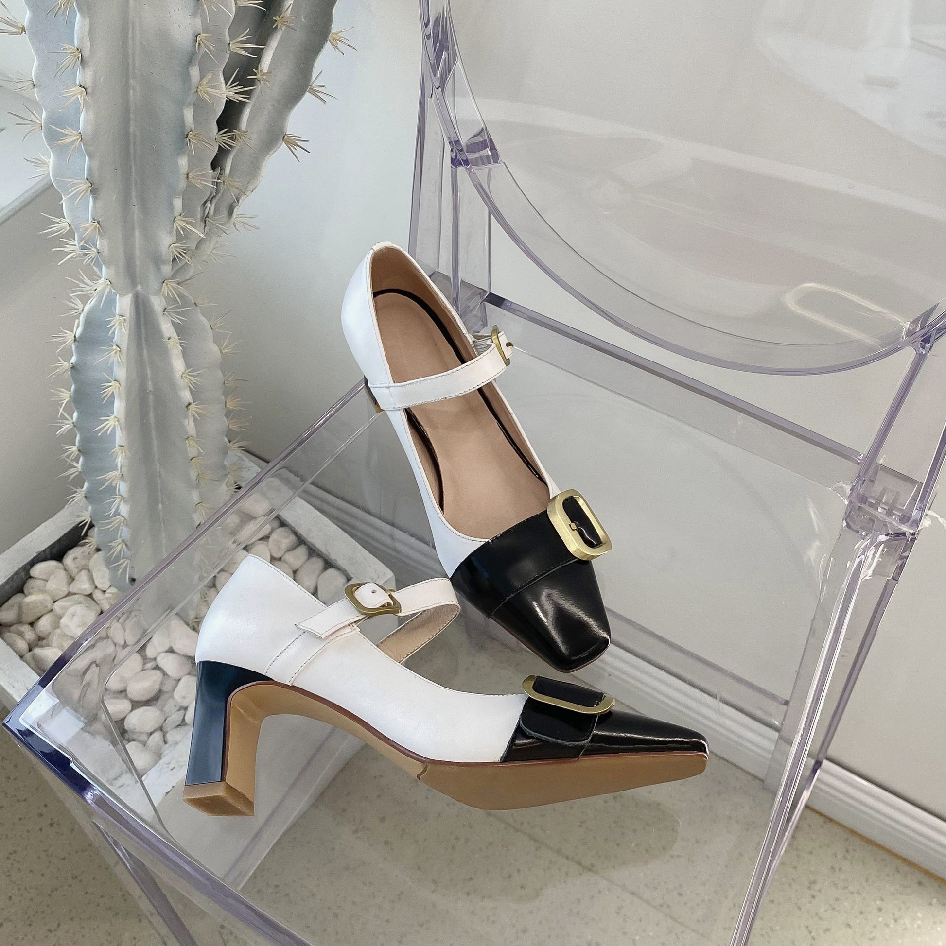 Fashion mary jane pump shoes are designed with genuine leather and mid heel.Buckle design is unique and trendy. It is suitable for party, club, wedding and many other occasions.