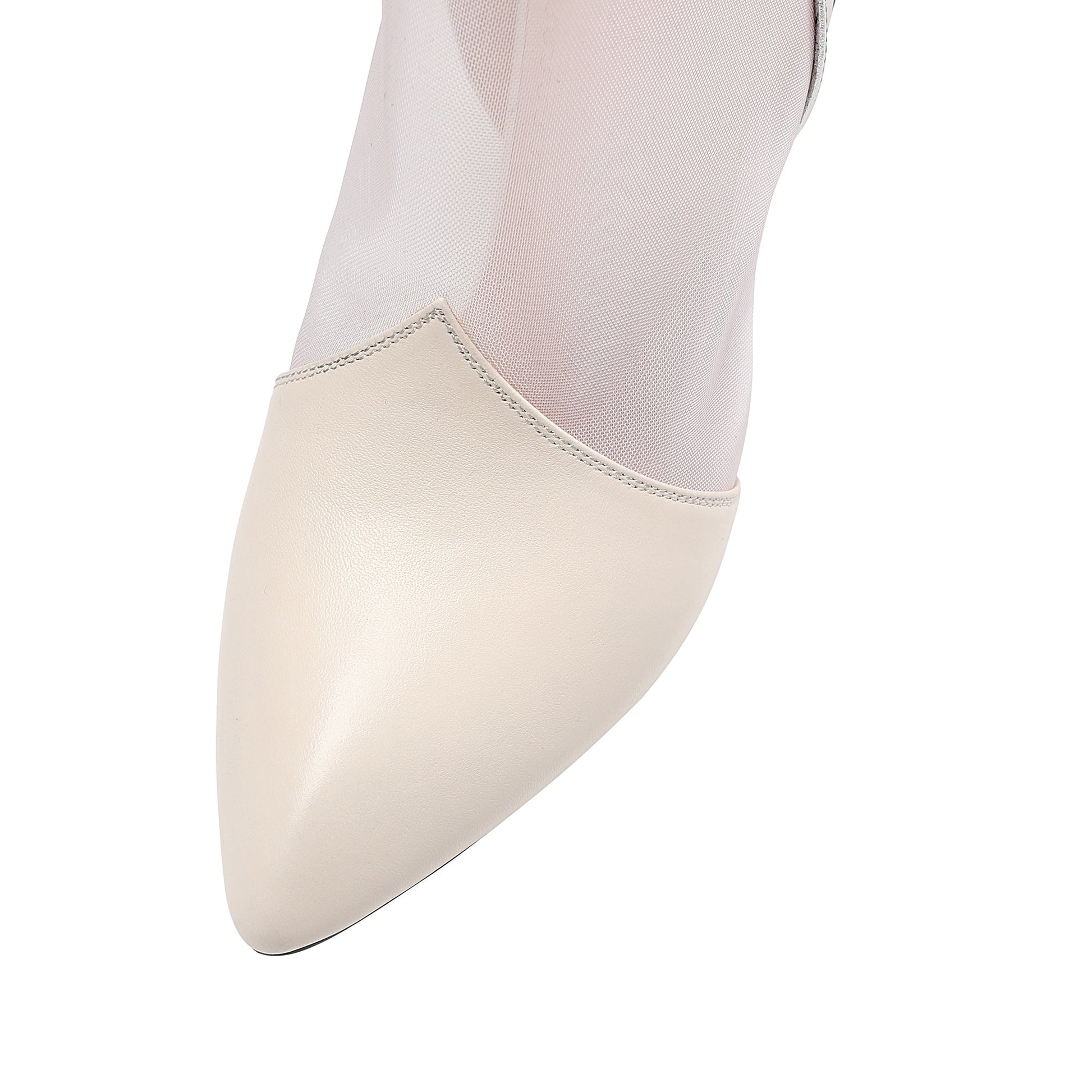 Sexy summer boots designed with genuine/suede leather, mesh, pointed toe, high chunky heels with jewelry and back zippers to keep up with fashion trend.