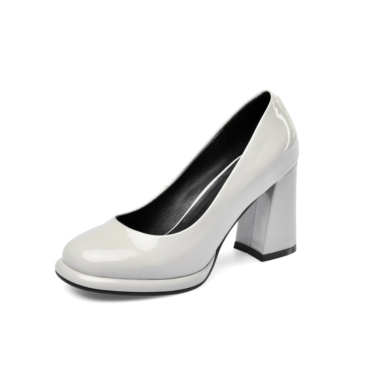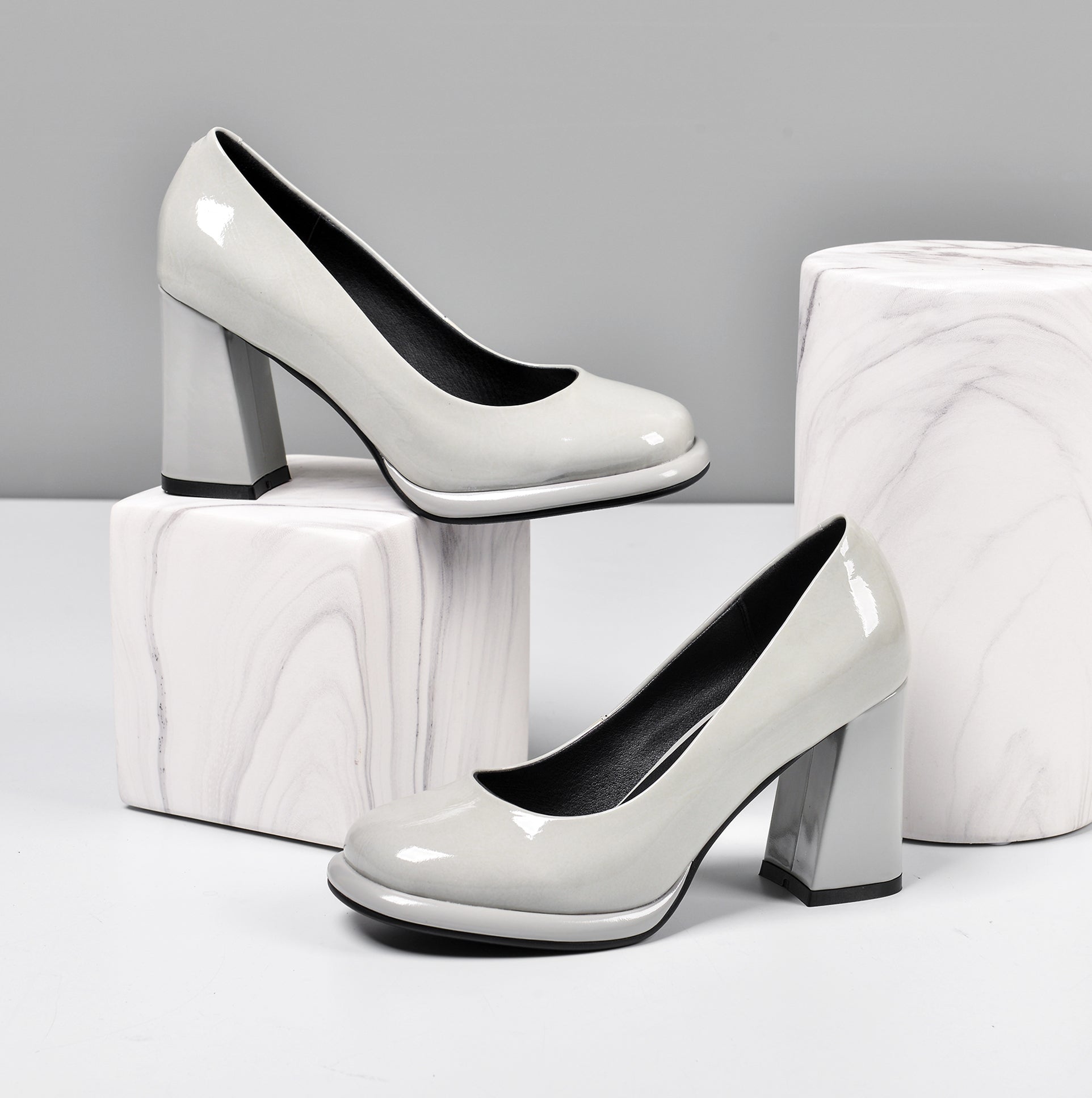 Nine Seven Women's Patent Leather Round Toe Handmade High Chunky Heels Slip On Pumps Shoes