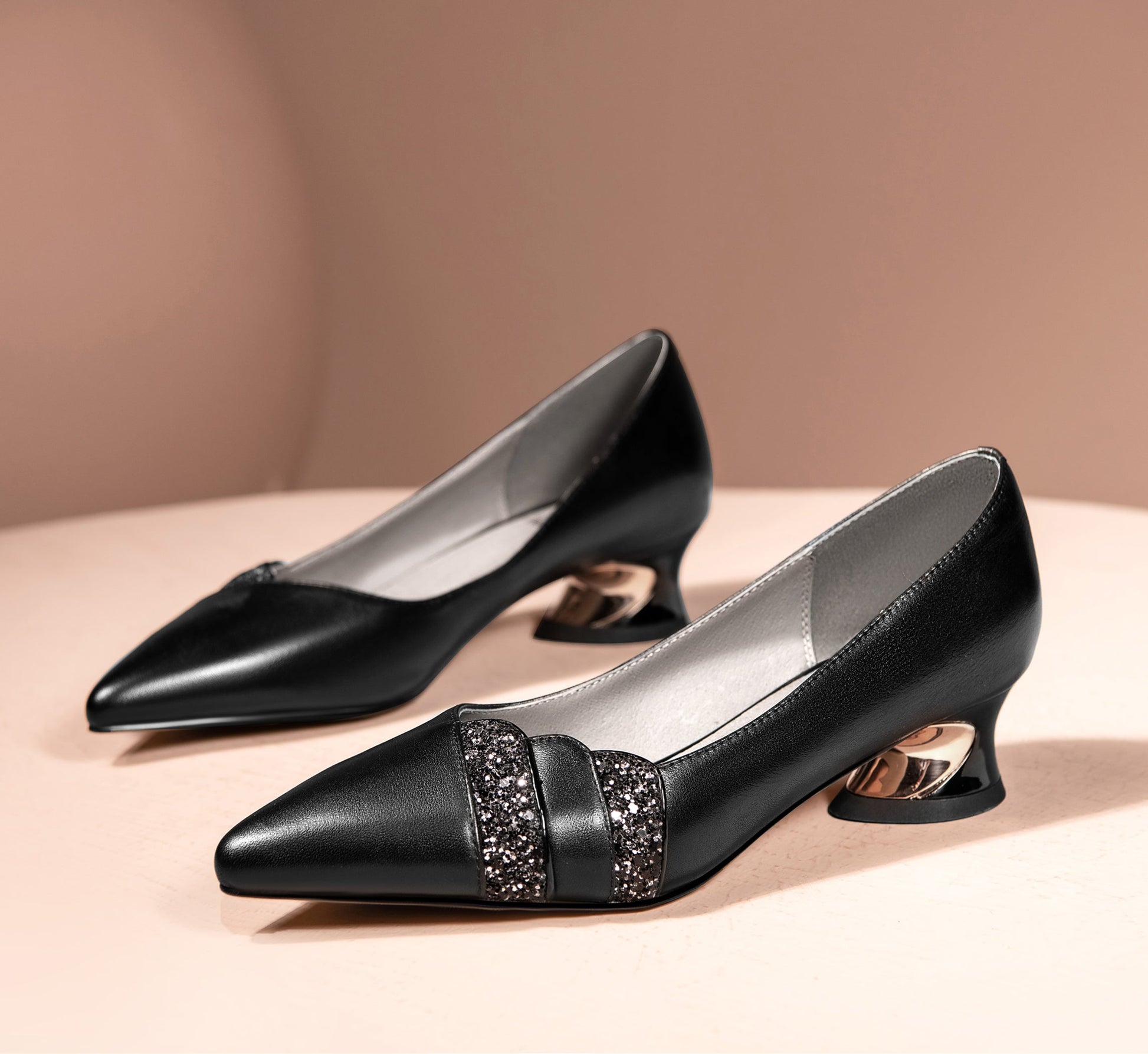 Graceful genuine leather pump shoes are designed with pointed toe and comfortable spool heel. Slip on closure makes this pumps effortless to take on and off. It is suitable for party, club, wedding and many other occasions.