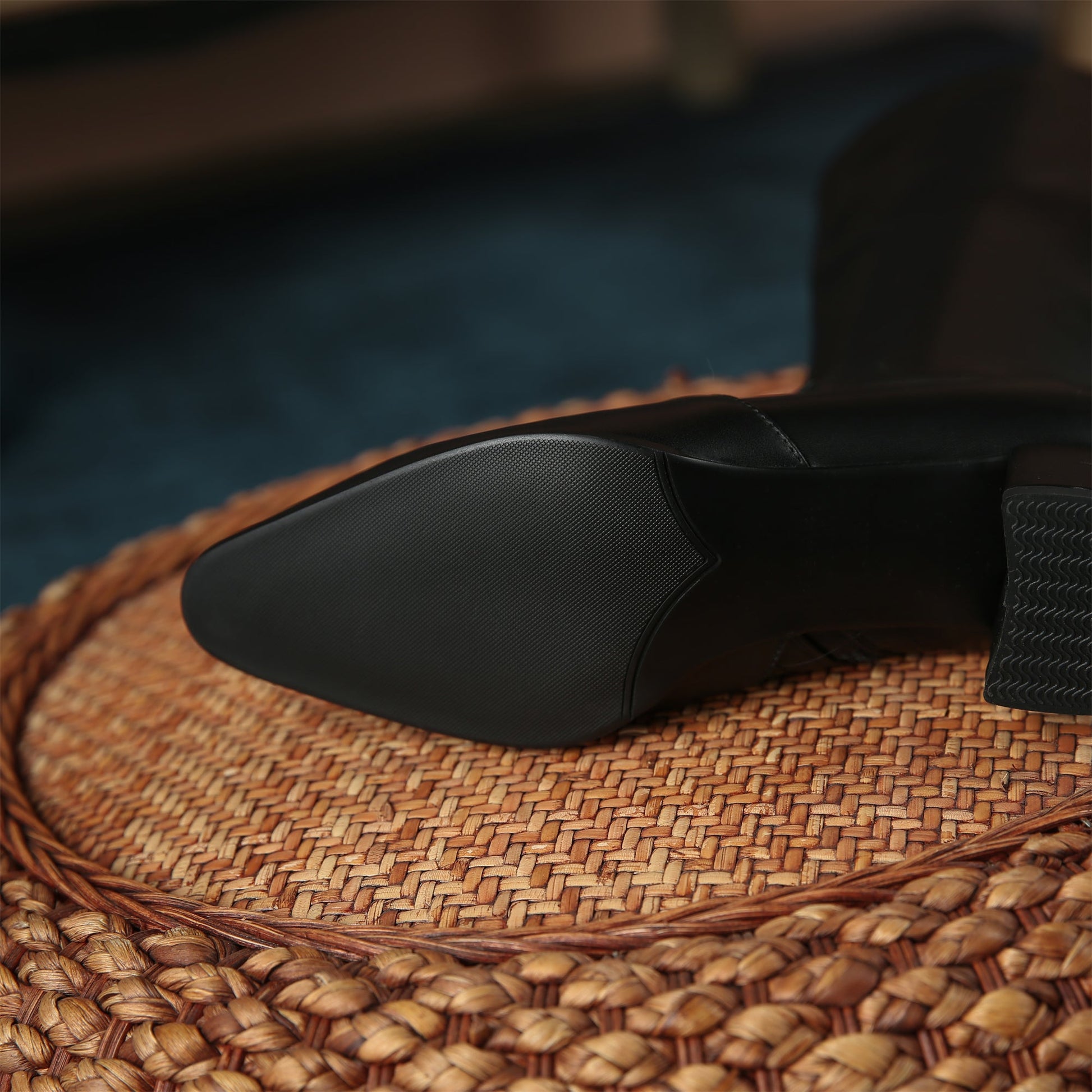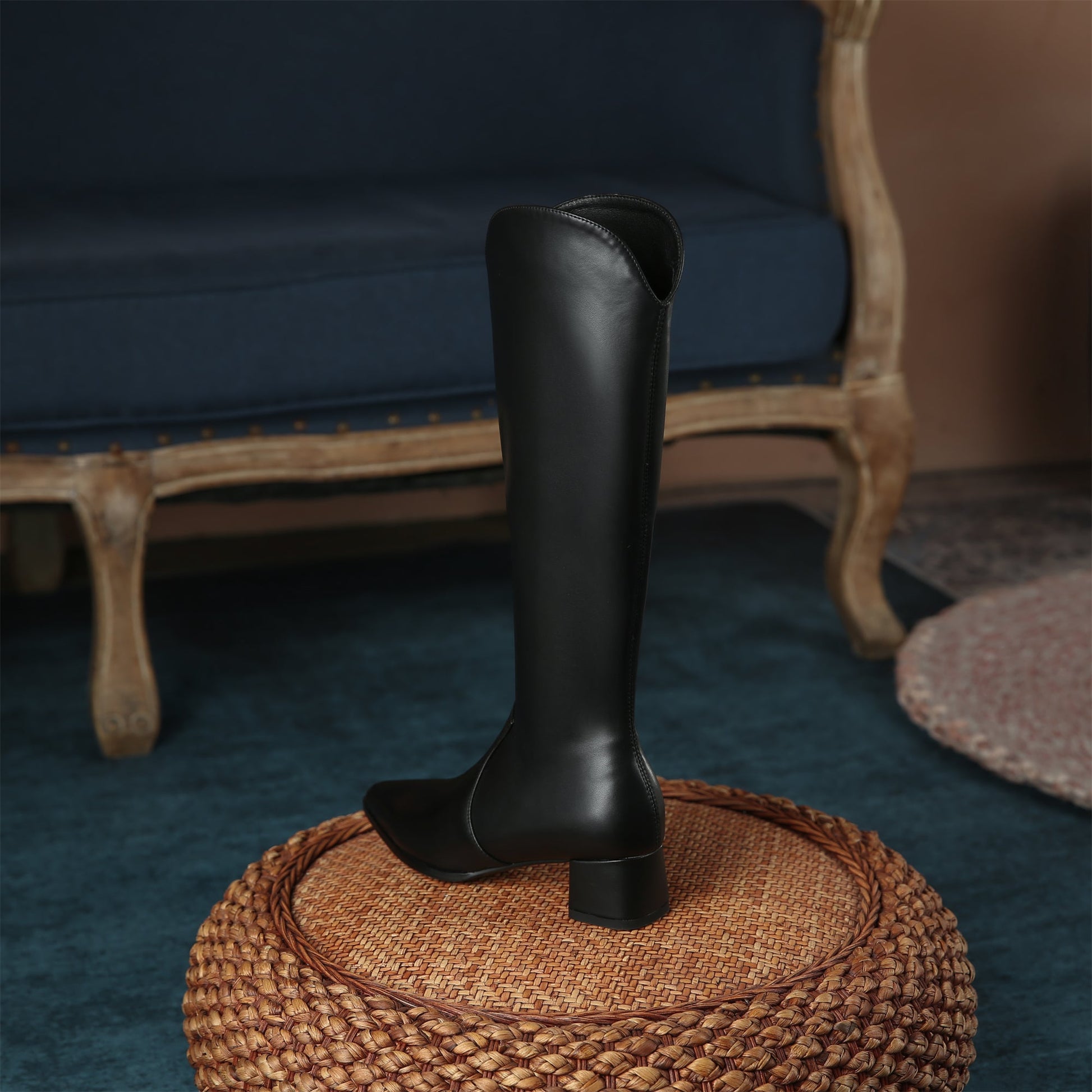 Nine Seven Women's Handmade Leather Comfortable Chunky Heel Side Half Zipper Round Toe Knee-High Boots