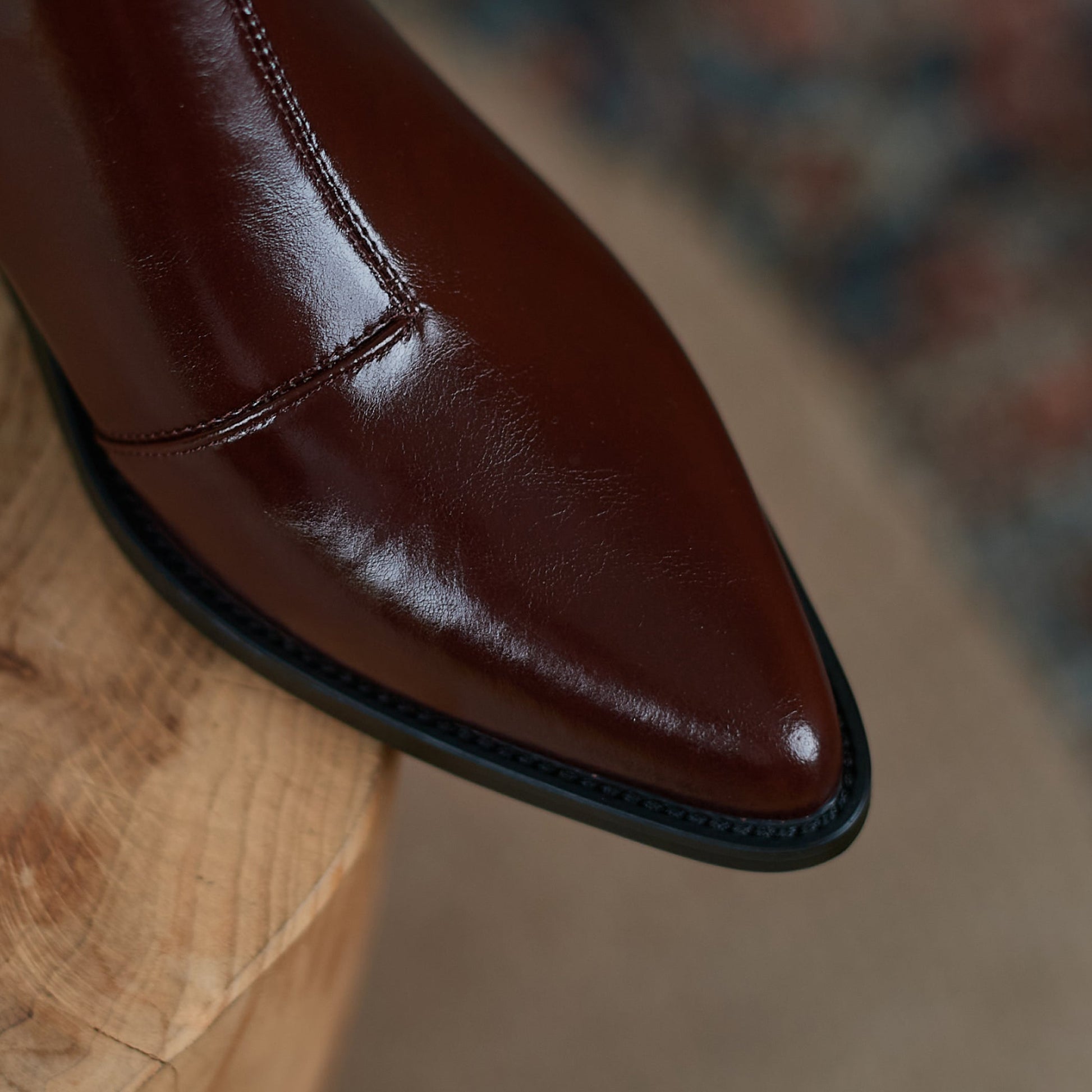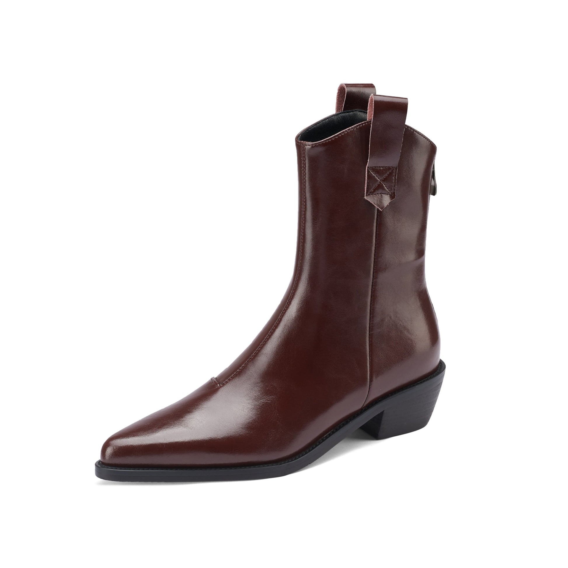 Nine Seven Genuine Leather Women's Pointed Toe Back Zip Up Handmade Chunky Heels Stylish Western Boots