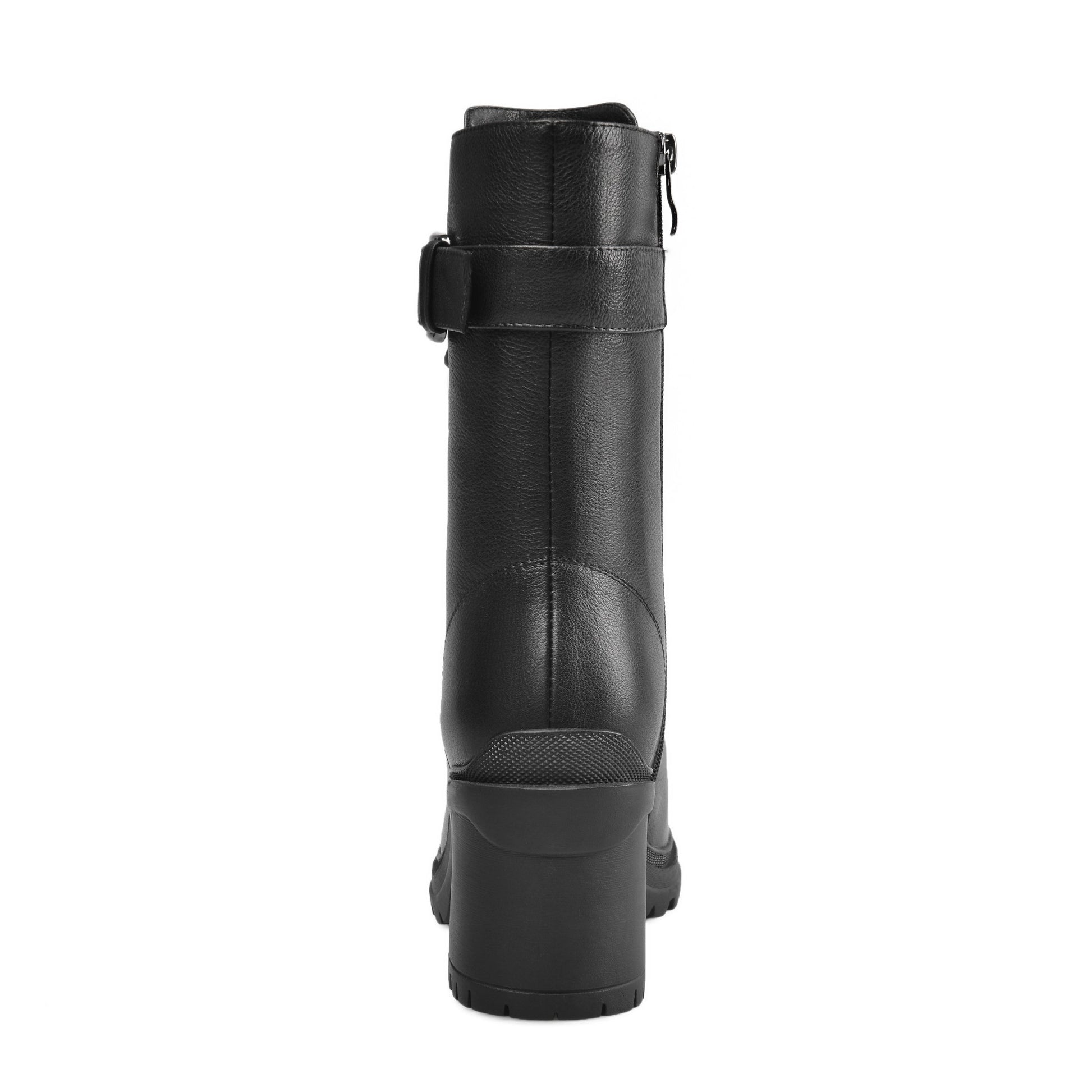 Nine Seven Women's Round Toe Selftie Zip Up Genuine Leather Handmade Chunky Heels Cool Mid-Calf Boots with Buckle