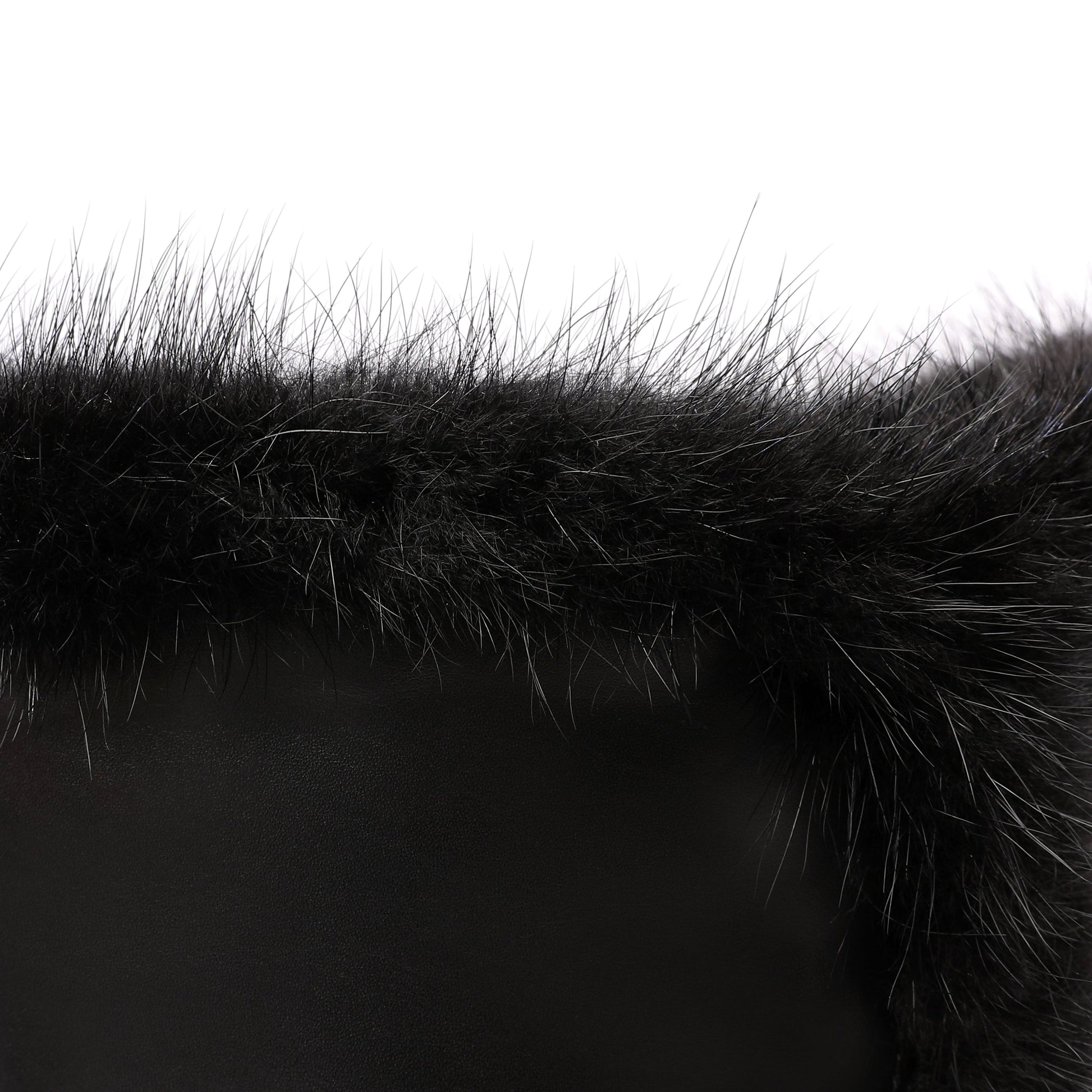 Nine Seven Handmade Women's Genuine Leather Spool Heel Side Zip Up Black Mid-Calf Boots with Fur And Chic Belt
