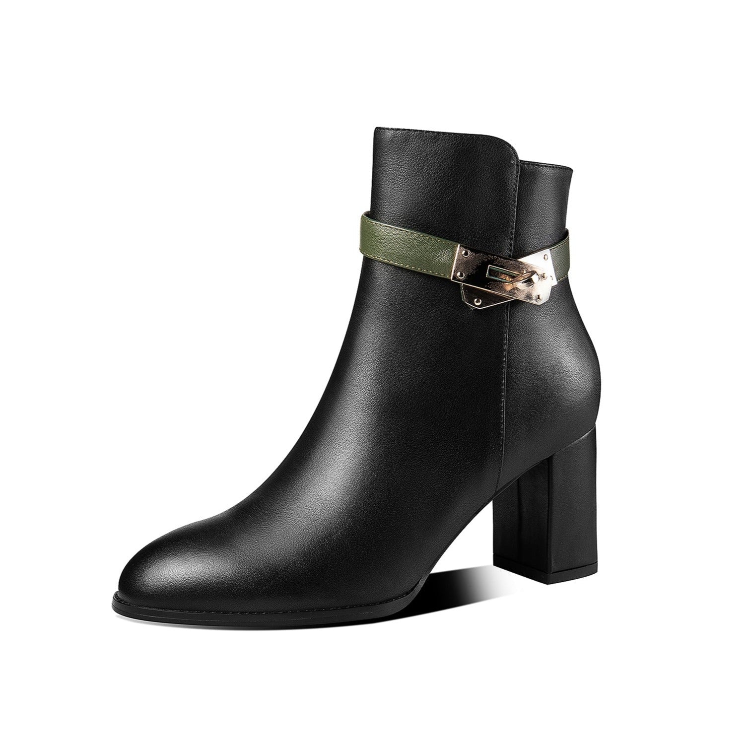 Nine Seven Women's Genuine Leather Handmade Stylish Chunky Heel Side Zip Up Belt Design Ankle Booties