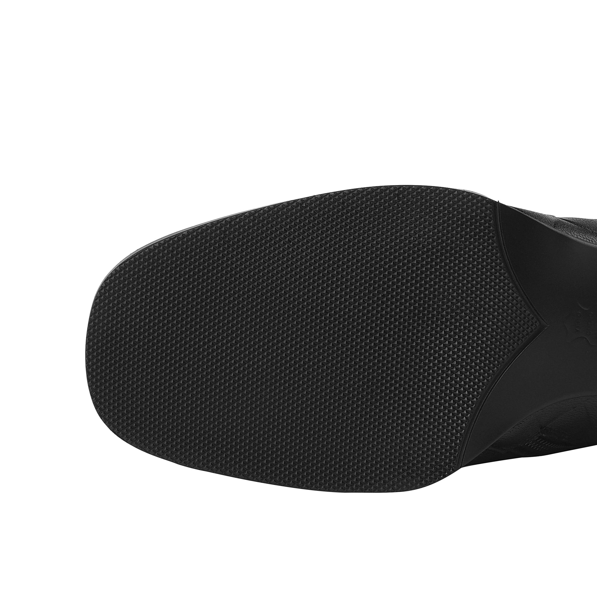 These stylish boots are designed with genuine leather, chunky heel, buckle and side zip to keep up with fashion trend.