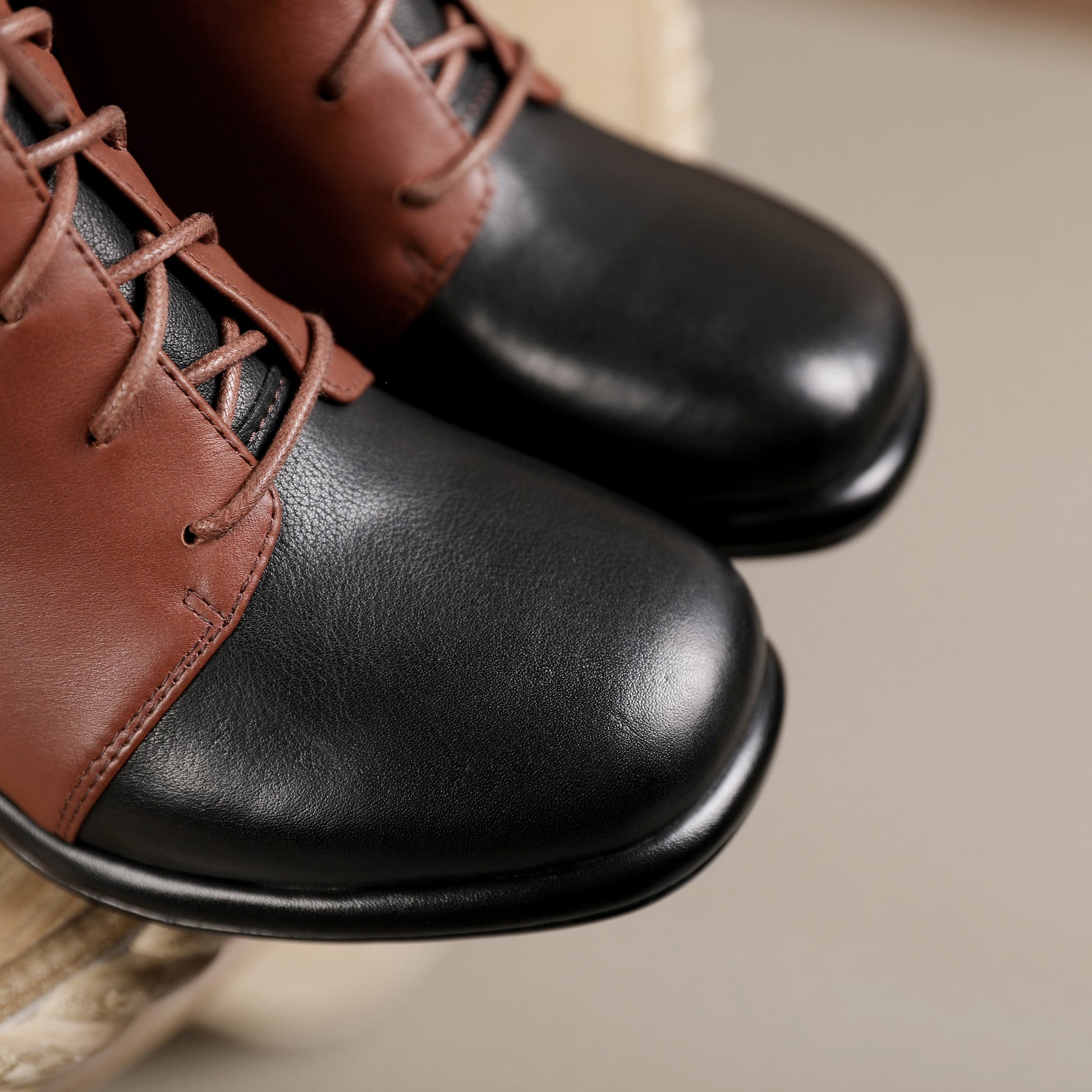 Retro ankle boots designed with rund toe, lace up, zipper and chunky heels can go with almost all your outfits.