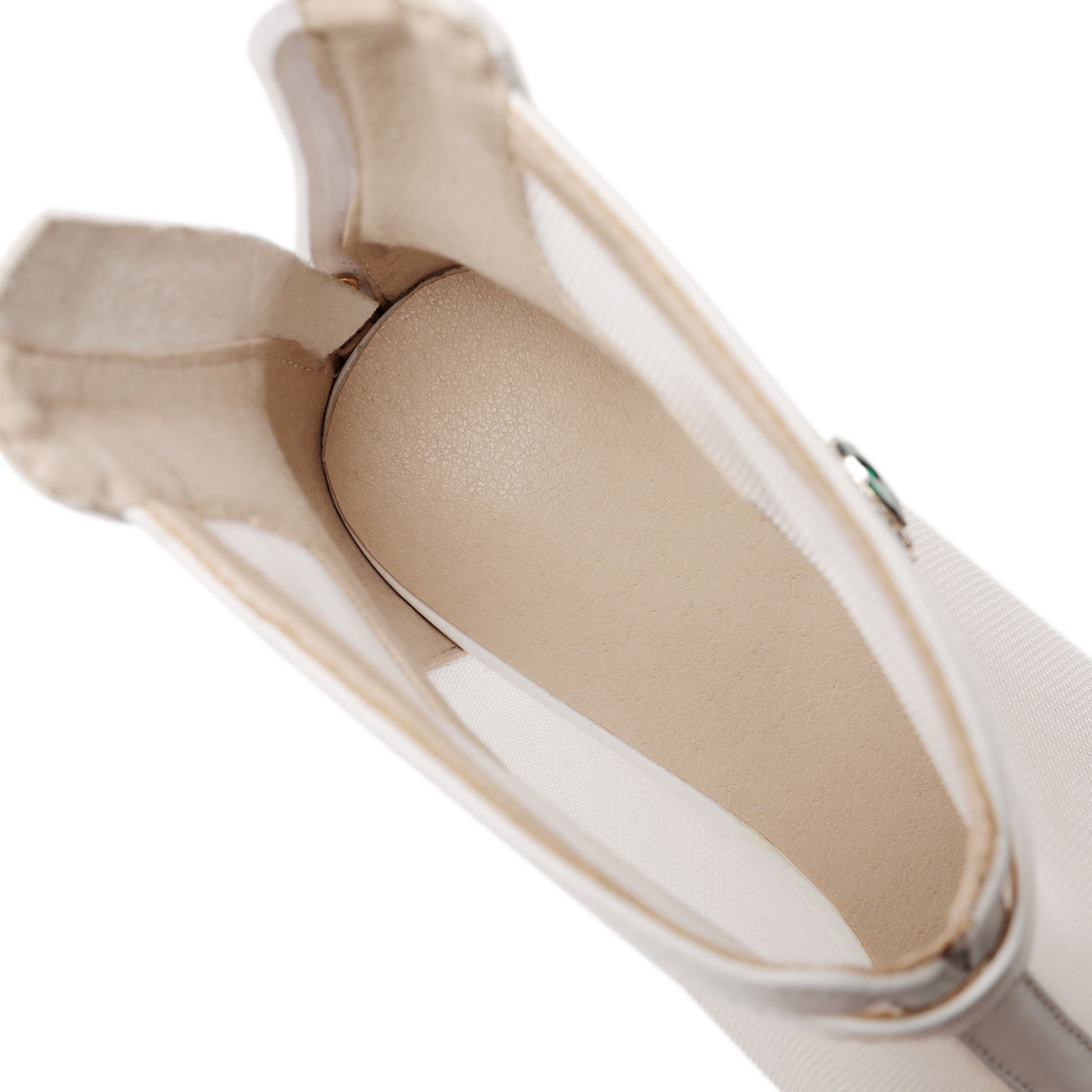 Modern summer boots are designed with leather and mesh, pointy toe, crystal and chunky heels.Slip-resistant sole could make you feel confident.