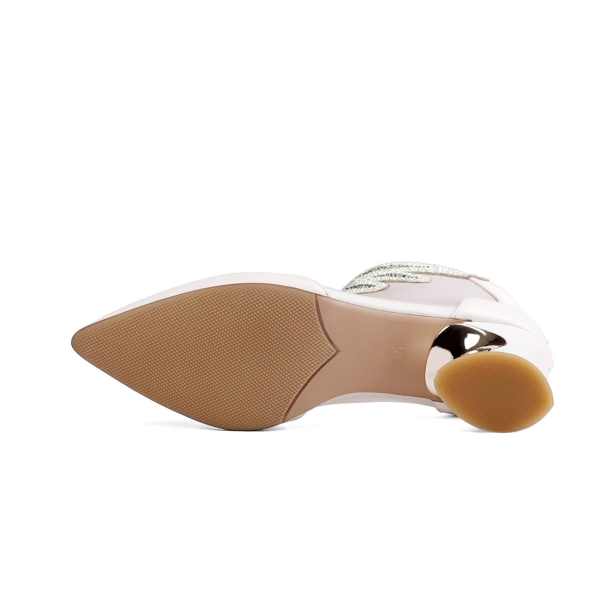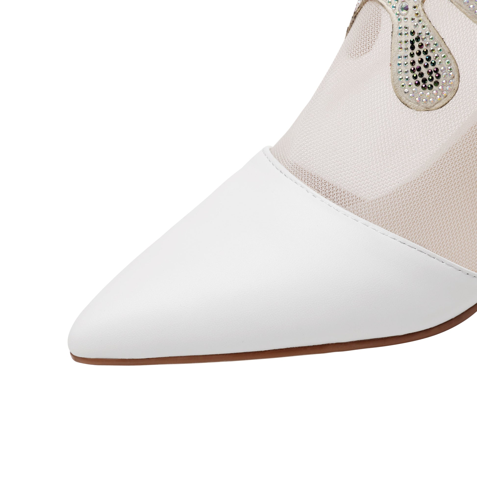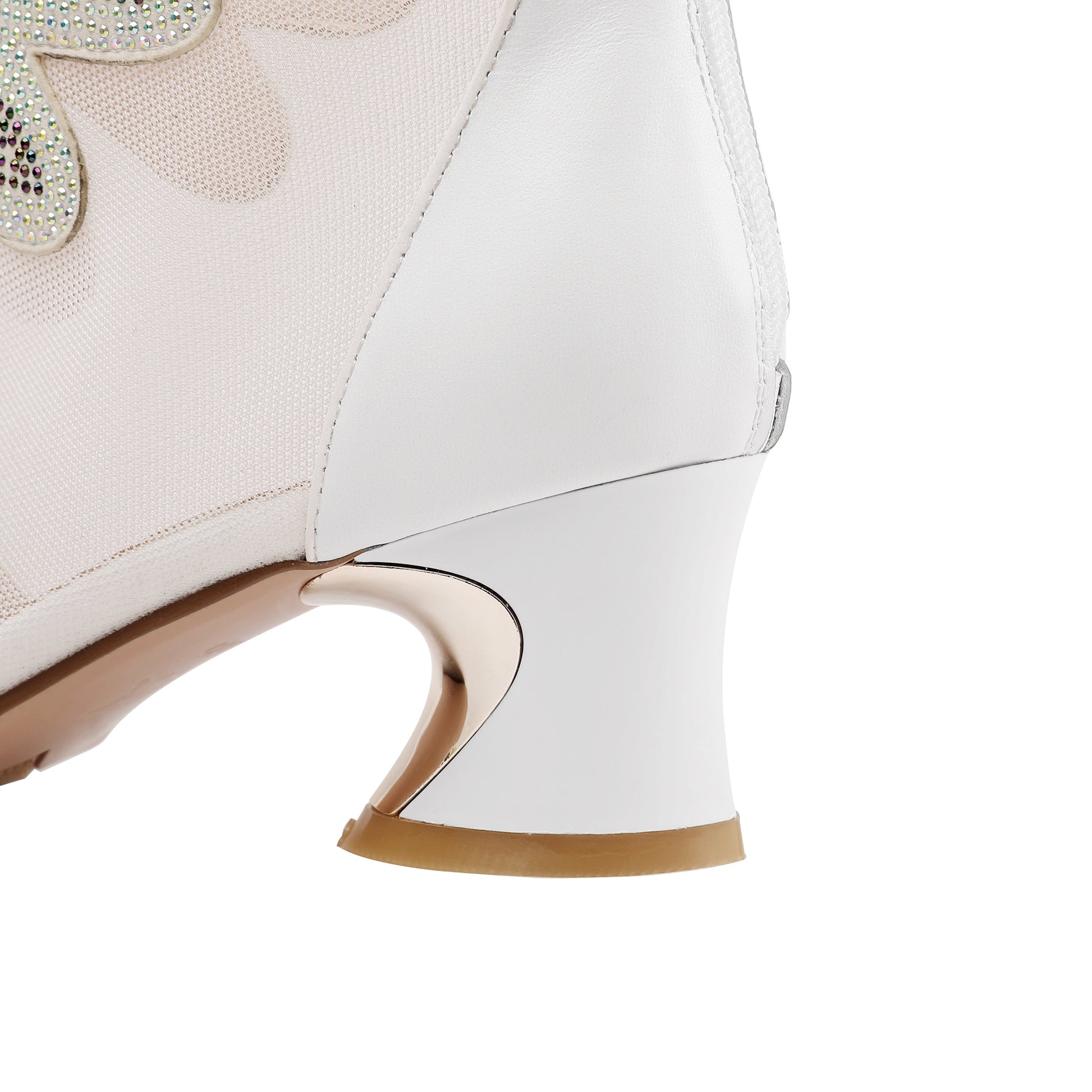 Graceful ankle boots are designed with leather,mesh, pointed toe and chunky heel. Back zipper is trendy and convenient.It is suitable for party, club and many other occasions.