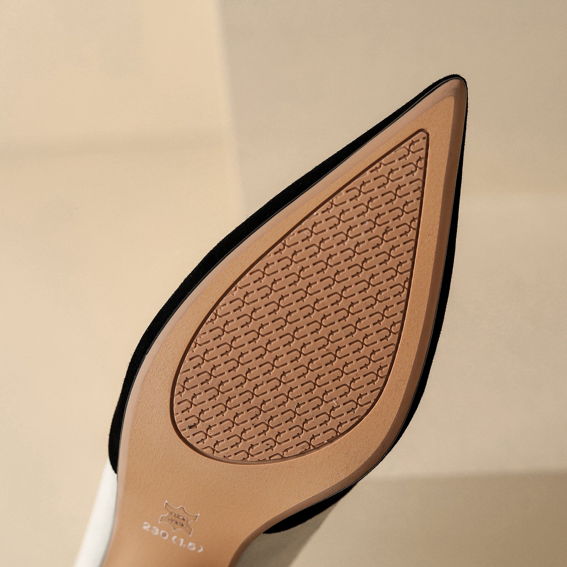 These loafer pumps are designed with suede and genuine leather, pointed toe and mid heels.Slip-resistant sole could make you feel confident.