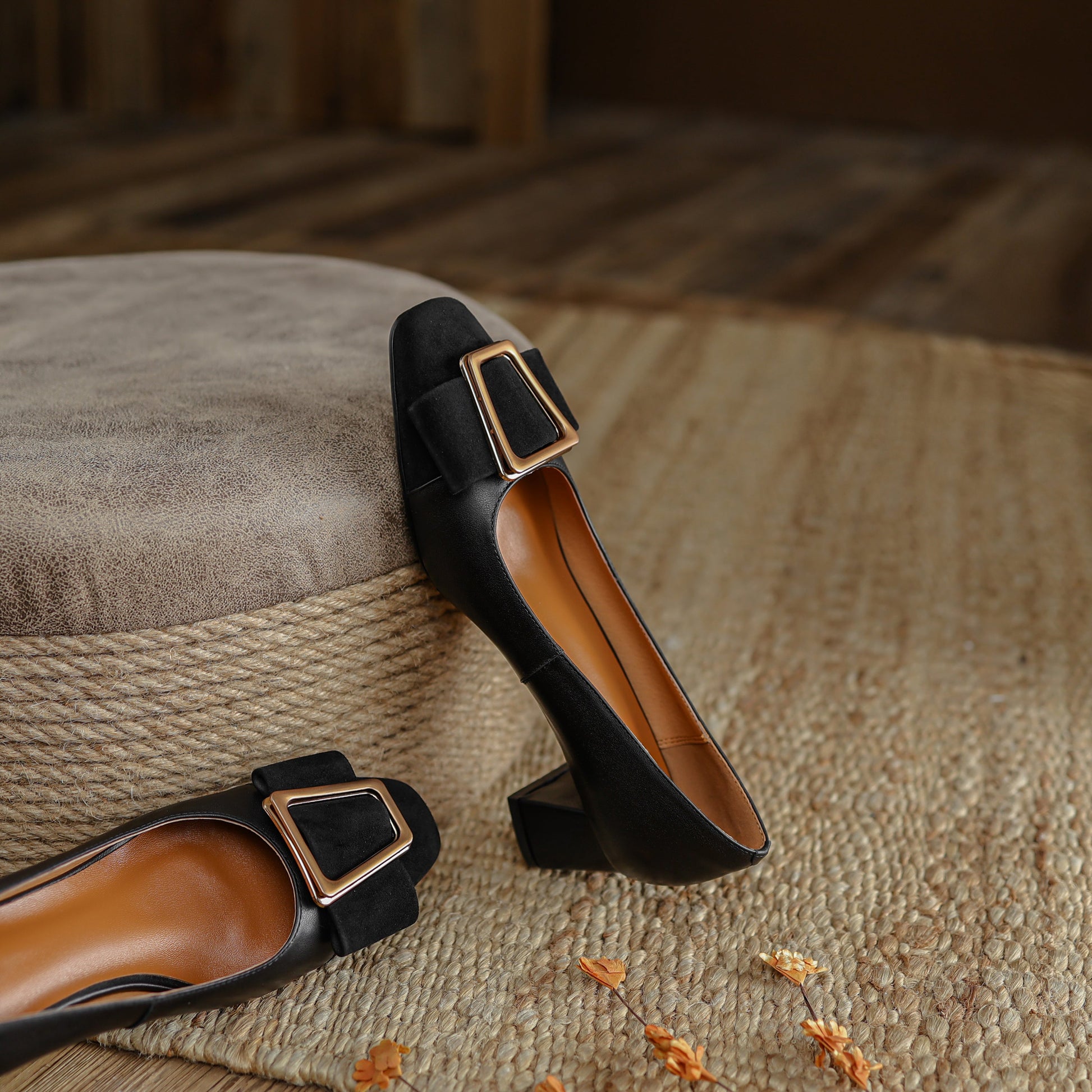 Nine Seven Women's Handmade Genuine Leather Chunky Heel Suede Square Toe Pumps Shoes