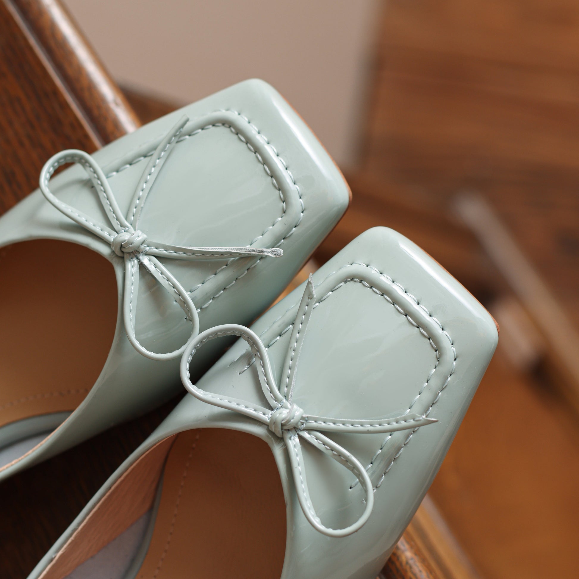 Nine Seven Glossy Patent Leather Women's Handmade Classic Square Toe Block Heel Slip On Loafer Pumps with Bowknot