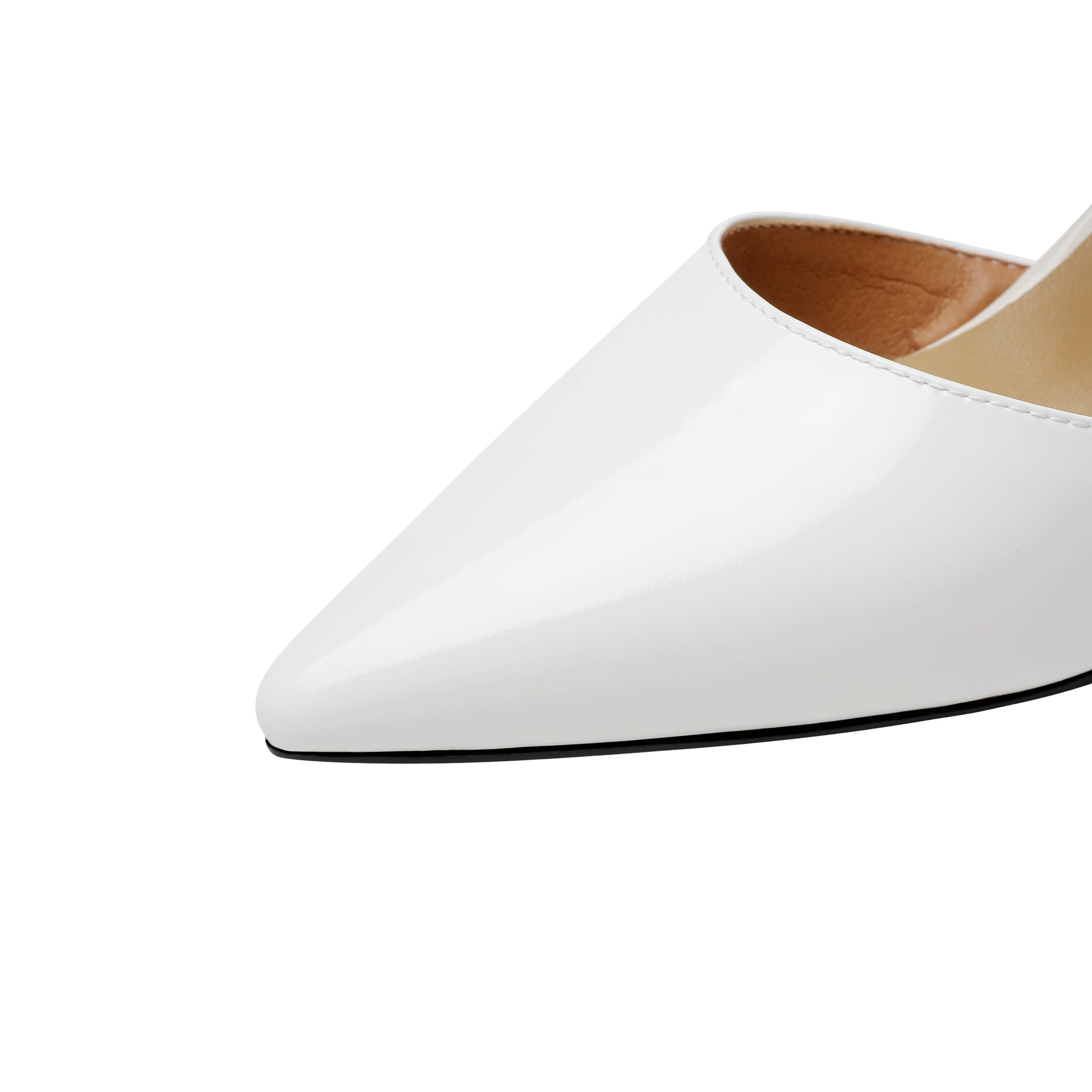 Nine Seven Women's Glossy Patent Leather Handmade Closed Toe Cone Heel Mule Sandals with Sparkling Glitter
