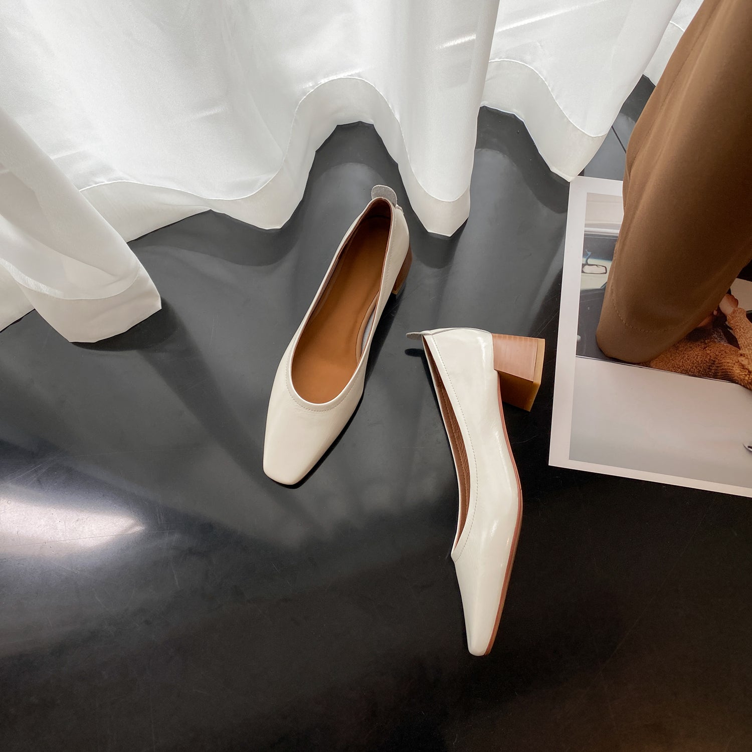 Stylish pump shoes are designed with genuine leather, comfortable chunky heel, slip on to keep up with fashion trend.