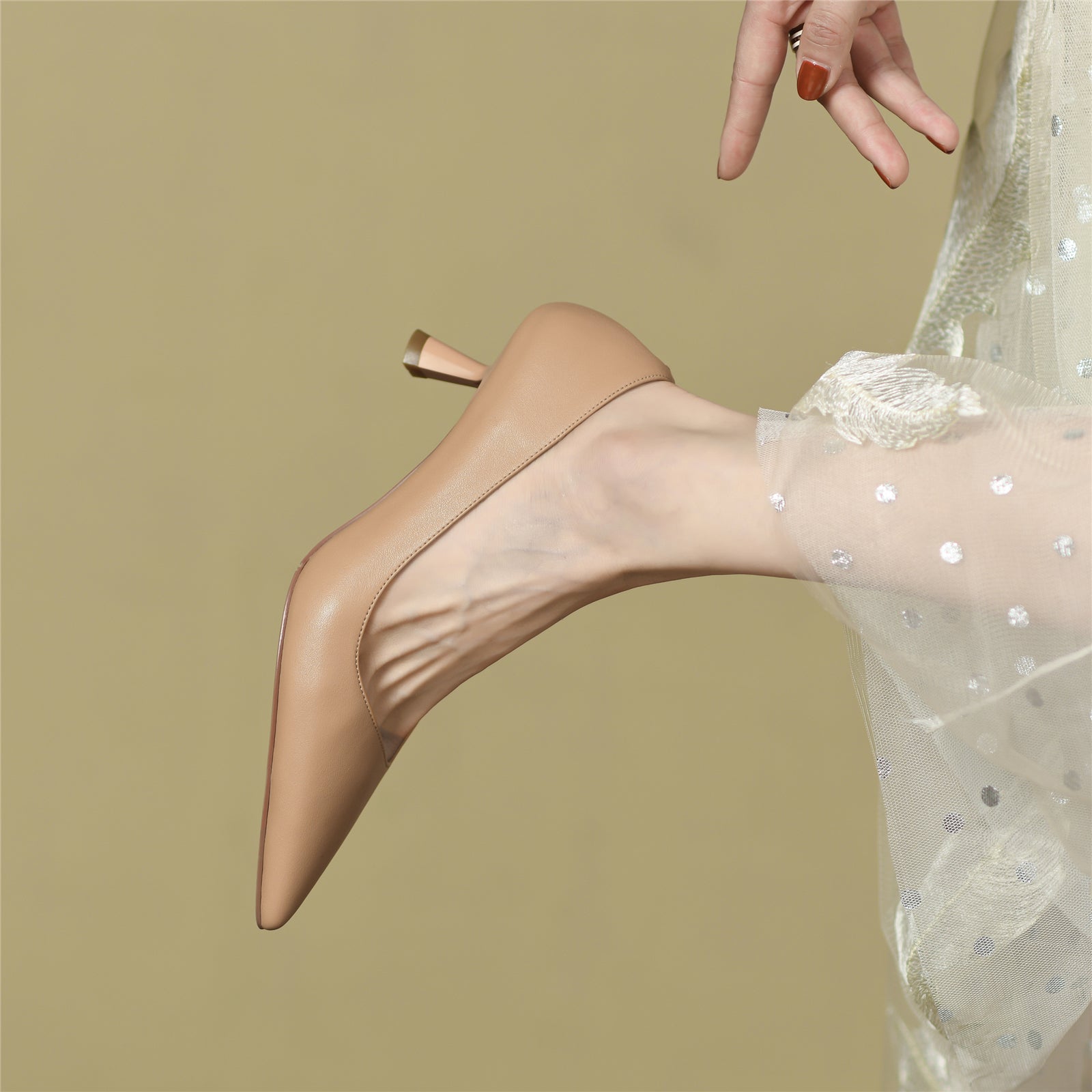 Modern pumps are designed with genuine leather, pointed toe, mid heel, slip on closure to keep up with fashion trend. These fashion shoes can go with many different styles of outfits.