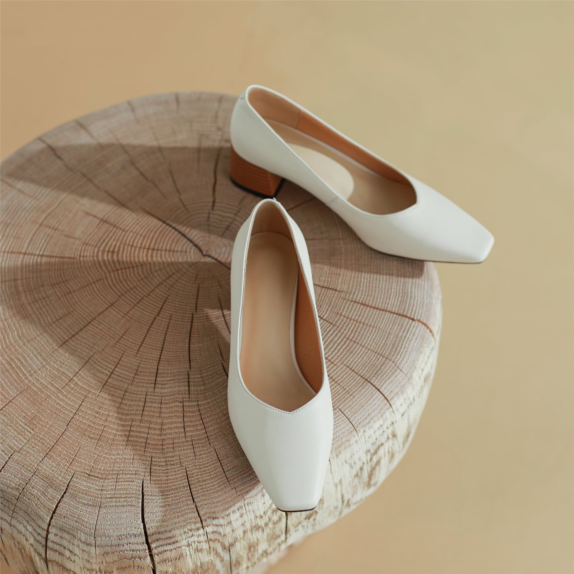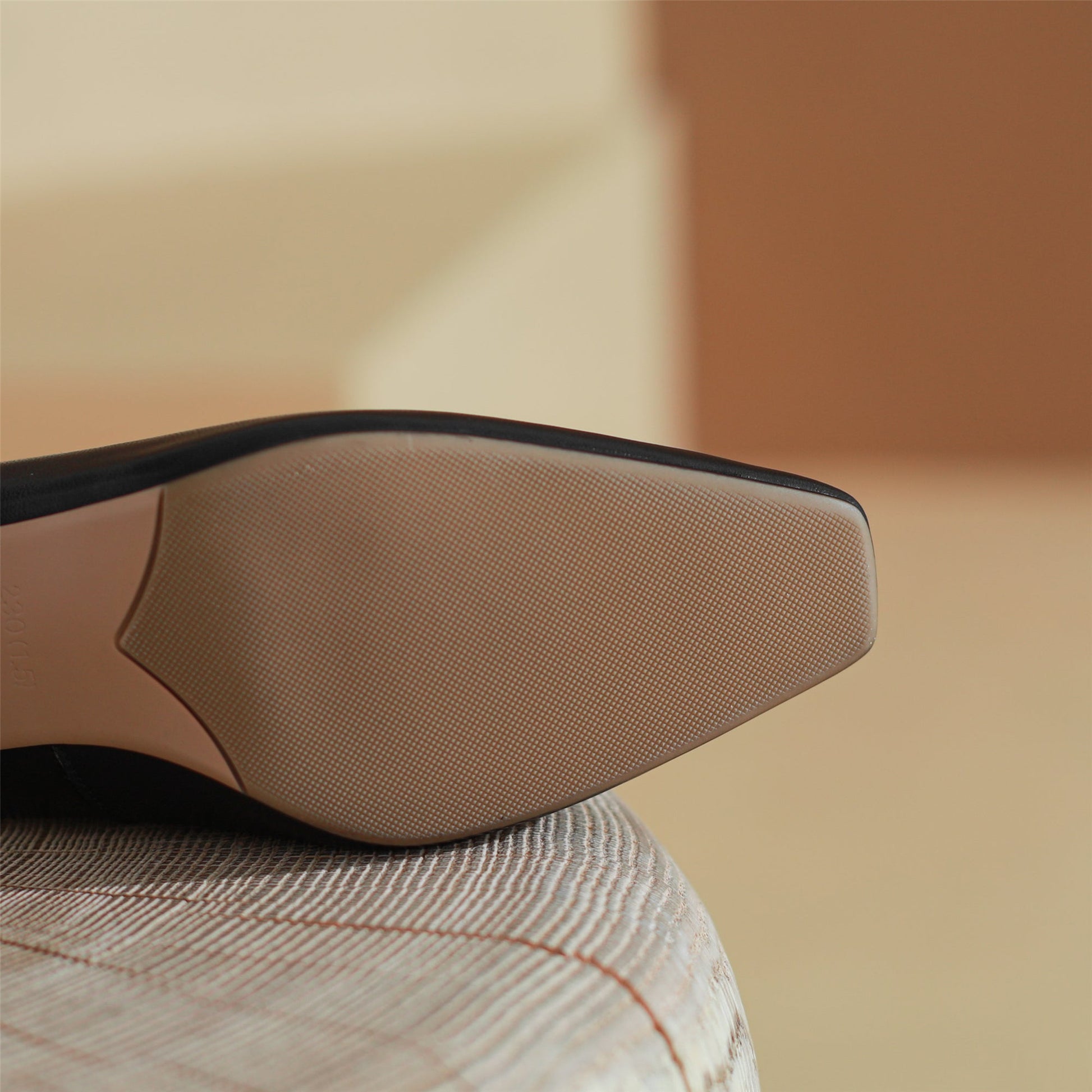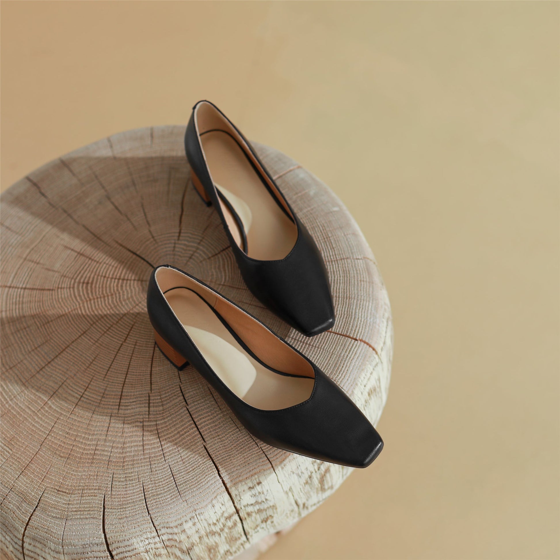 Nine Seven Women's Square Toe Genuine Leather Handamde Low Chunky Heel Casual Loafers