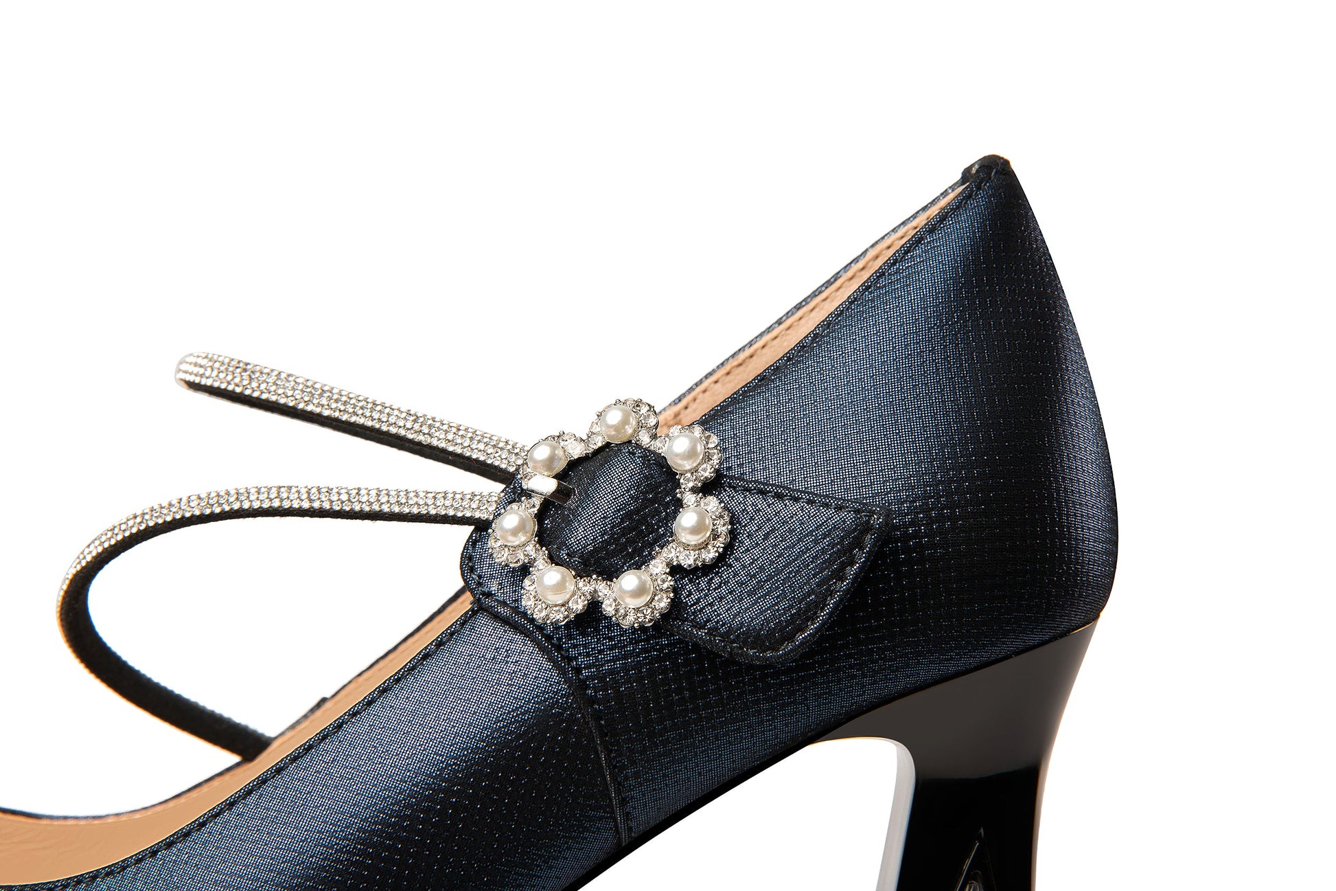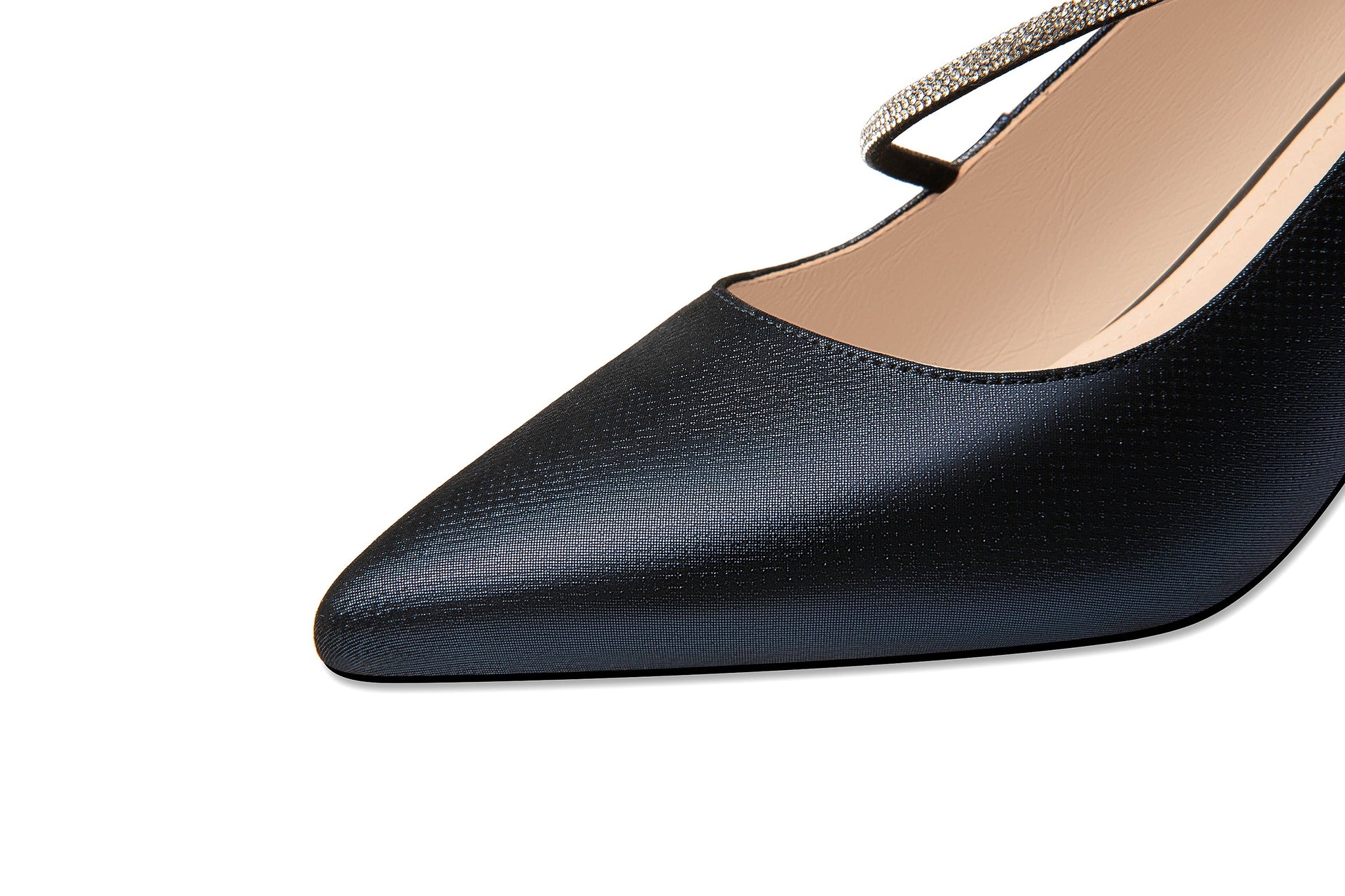 Elegant pumps shoes designed with genuine leather, pointed toe, flower buckle and mid heels can go with almost all your outfits.