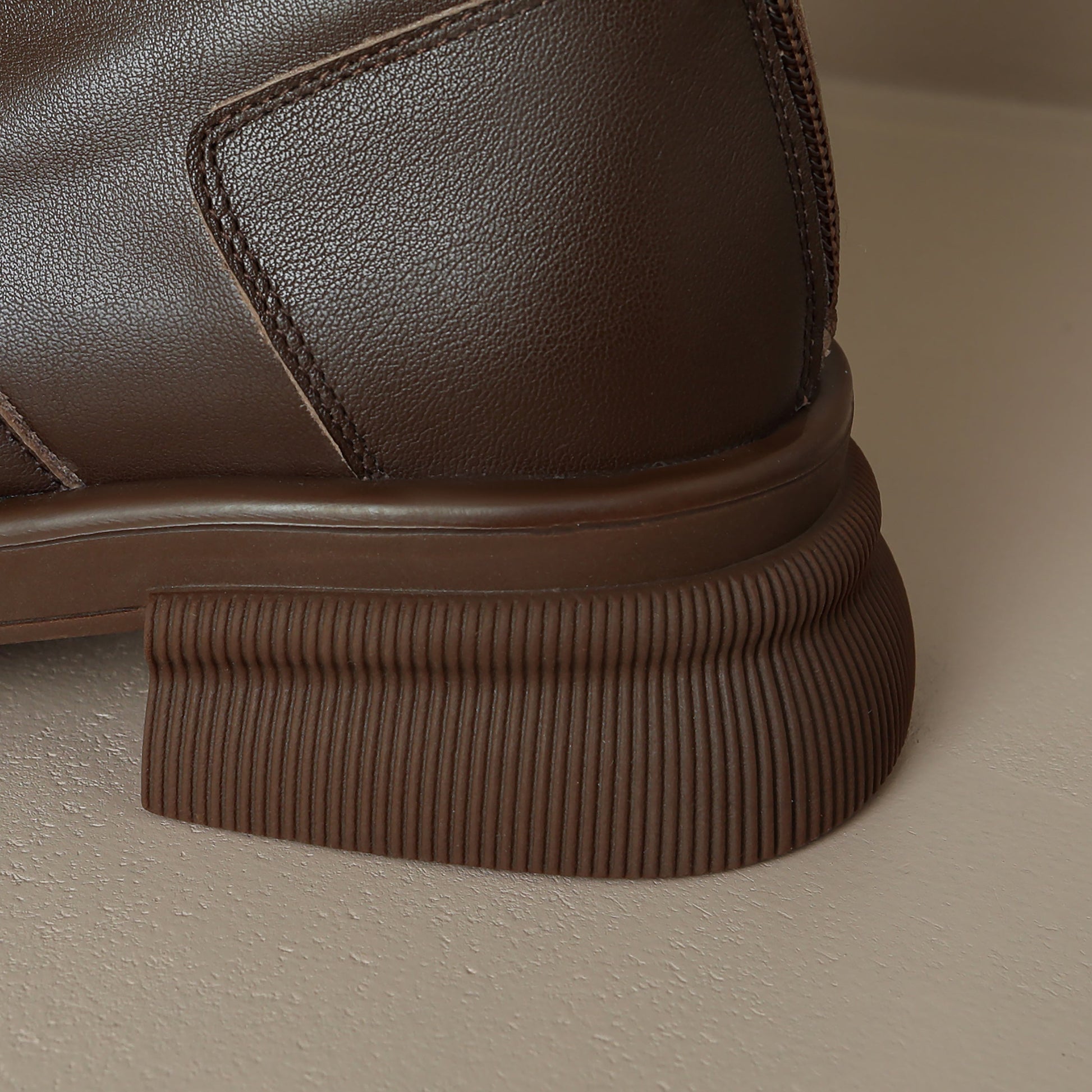 Nine Seven Women's Genuine Leather Round Toe Handmade Selftie Back Zip Up Chic Mid Calf Boots with Platform