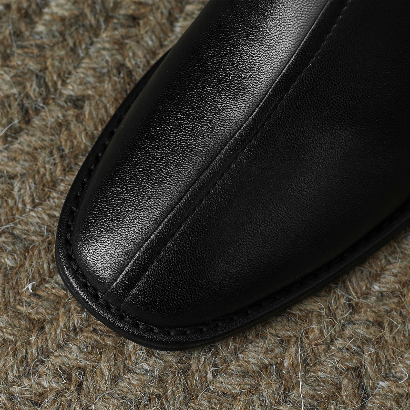 NIne Seven Women's Round Toe Genuine Leather Handmade Zipper Mid Chunky Heels Casual Mid-Calf Boots
