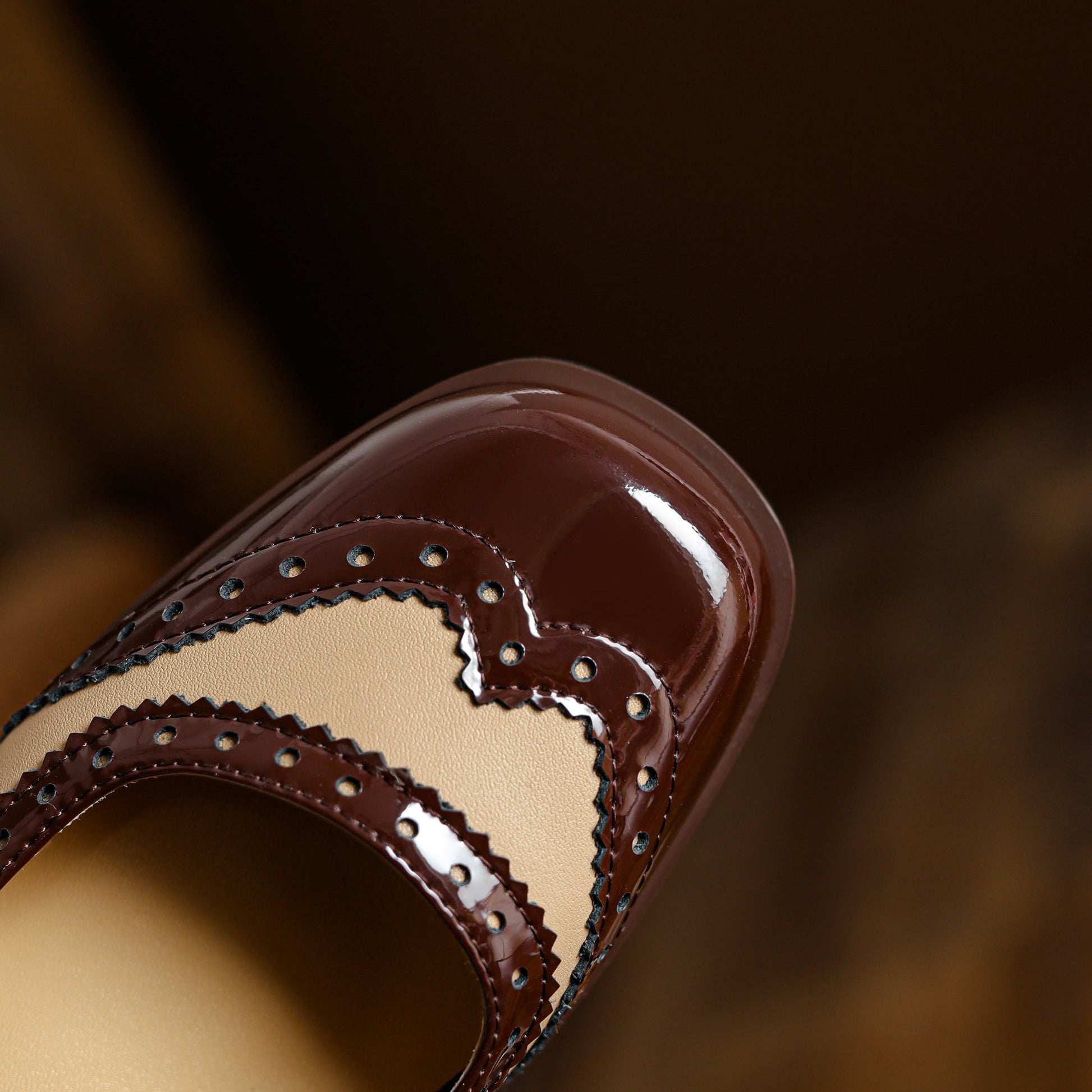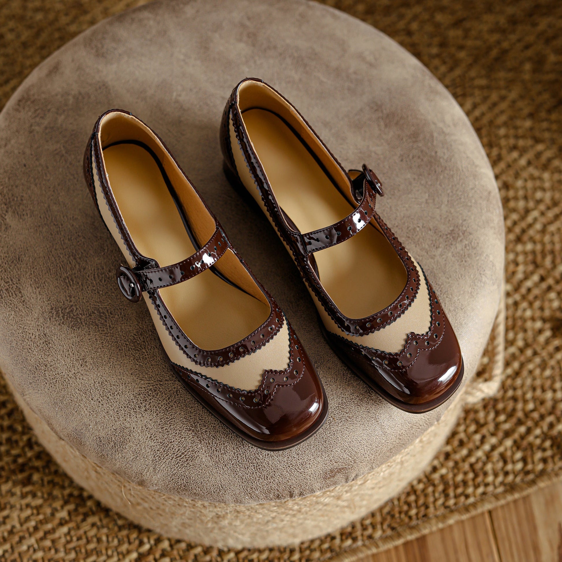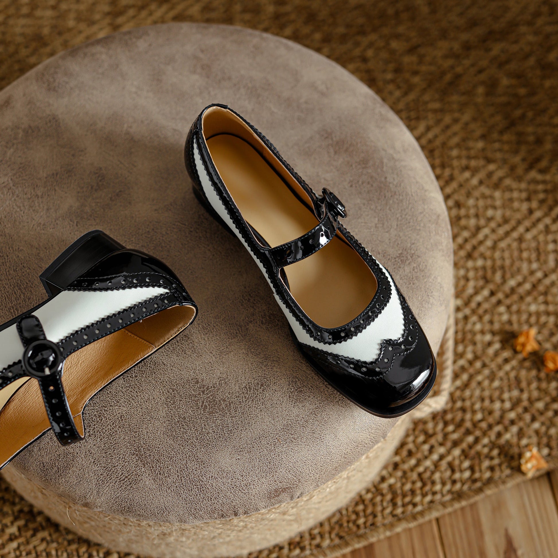 Nine Seven Women's Patent Leather Handmade Lace Buckle Round Toe Low Block Heel Mary Jane Flats Shoes