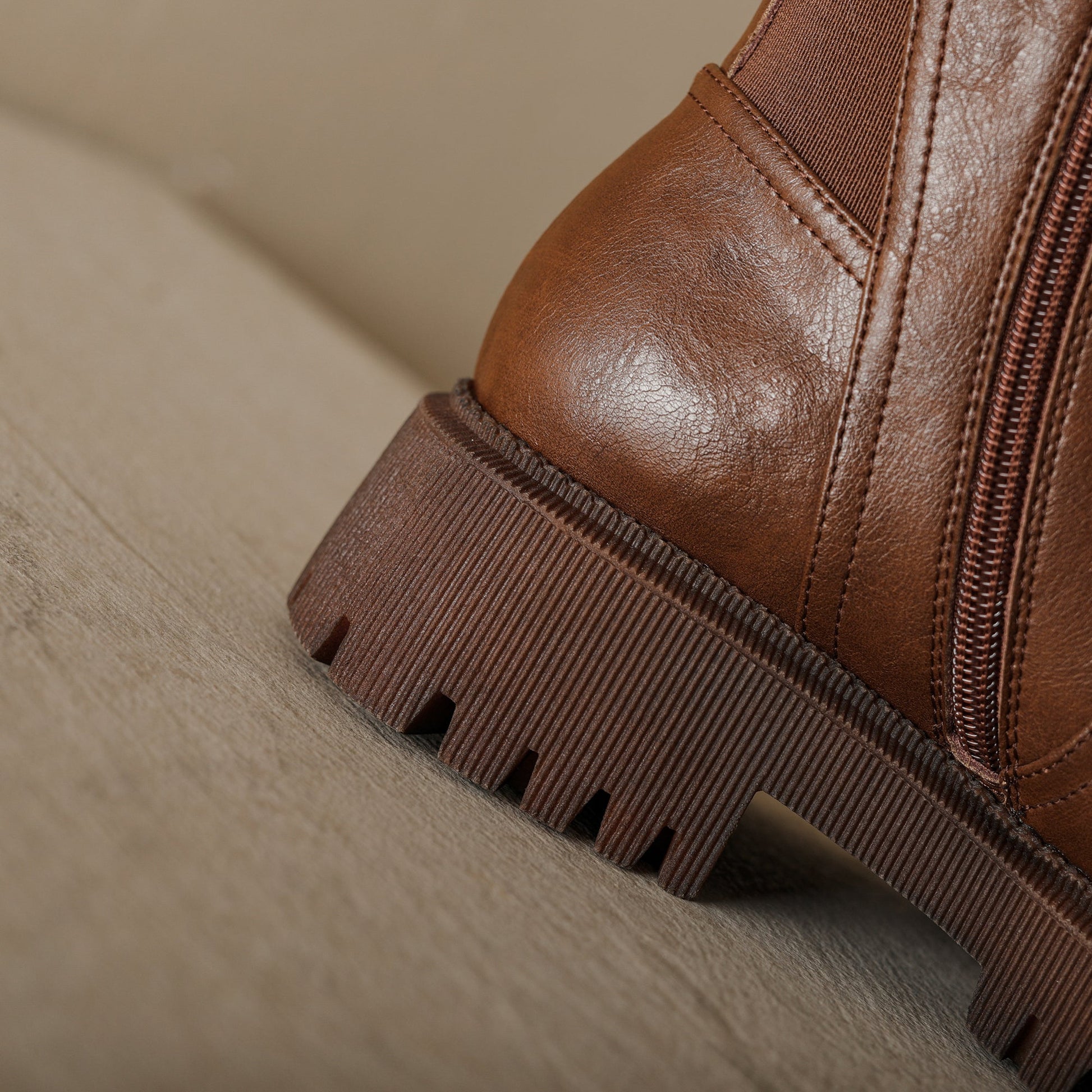 Genuine leather zip up ankle booties with khaki, black and other basic colors, simple shoe design, very easy to match, easy to create a comfortable, casual, romantic French style.