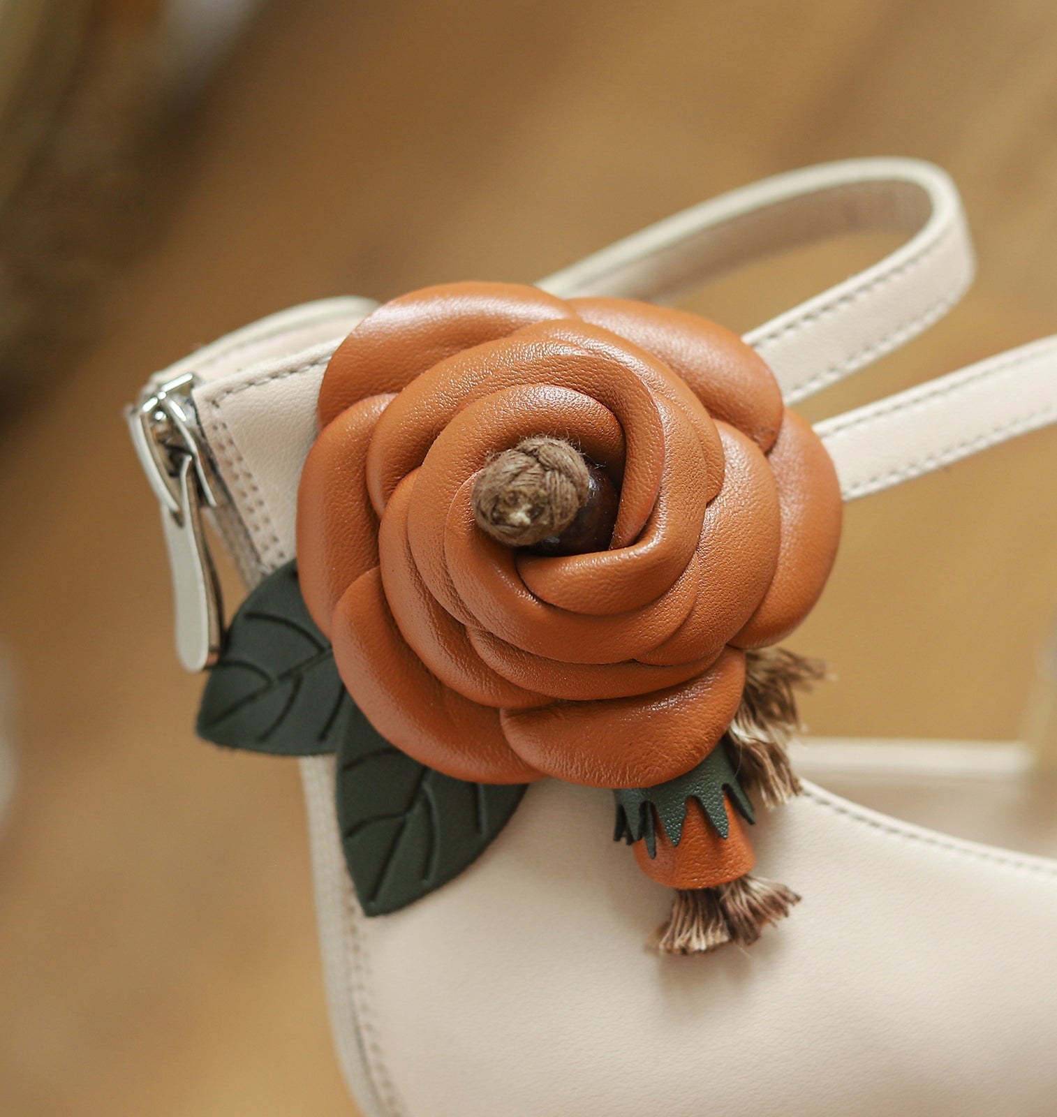 Nine Seven Handmade Women's Elegant Genuine Leather Décor Flower Ankle Strap Round Toe High Block Heel Pumps Shoes