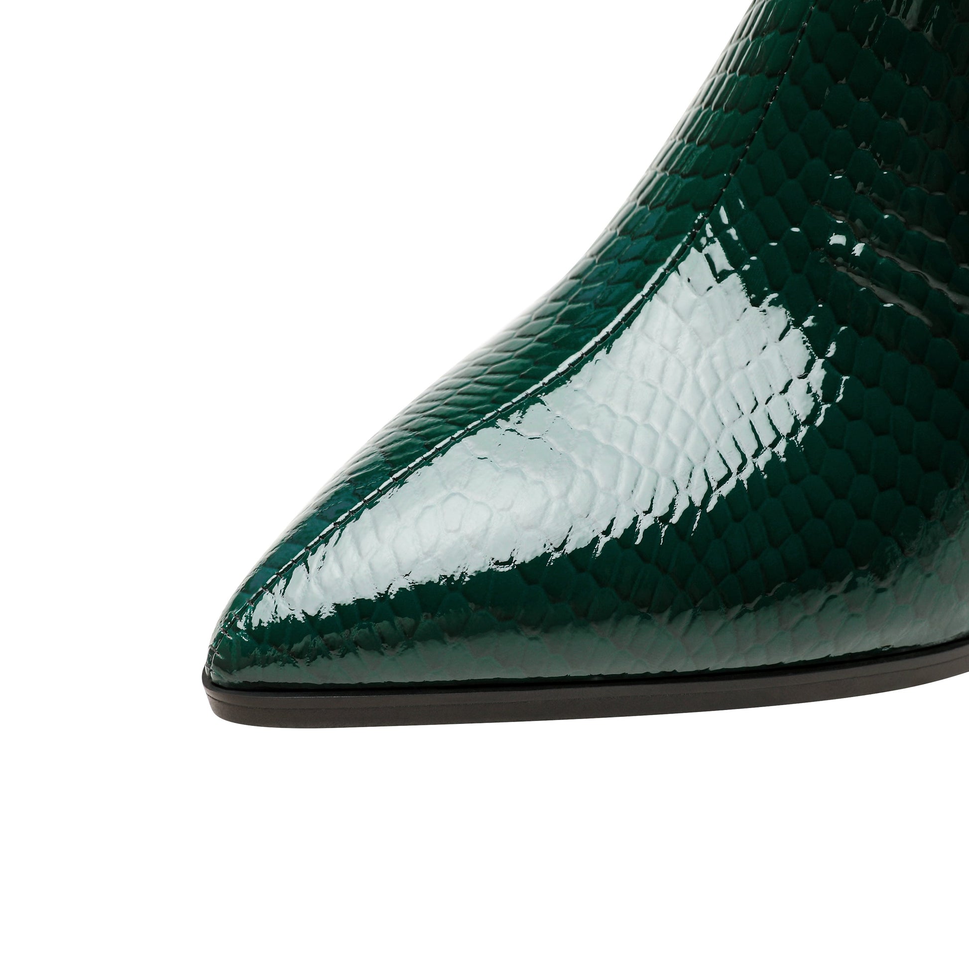 Nine Seven Handmade Women's Patent Leather Front Zipper Pointed Toe Mid Rhinestones Chunky Heel Ankle Boots