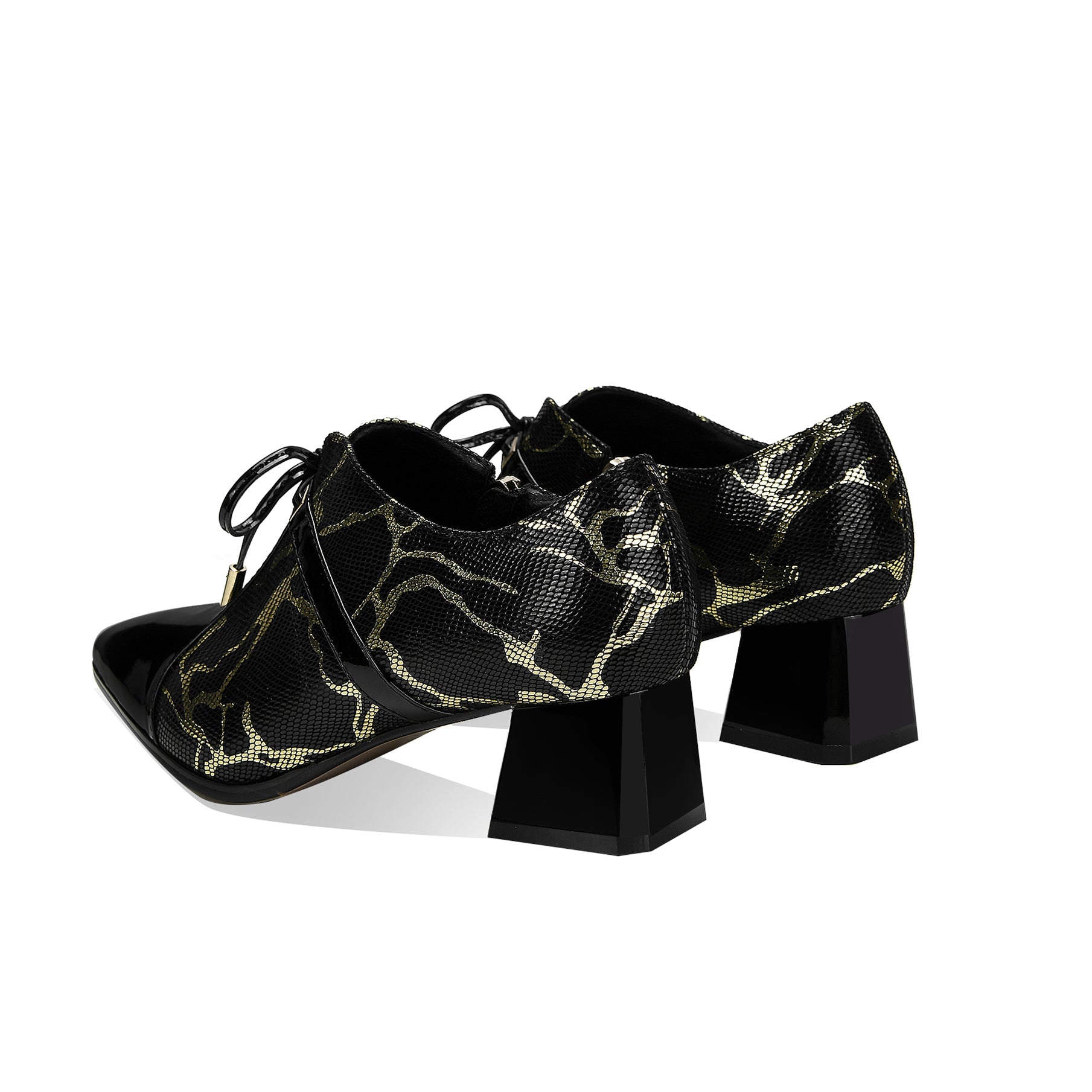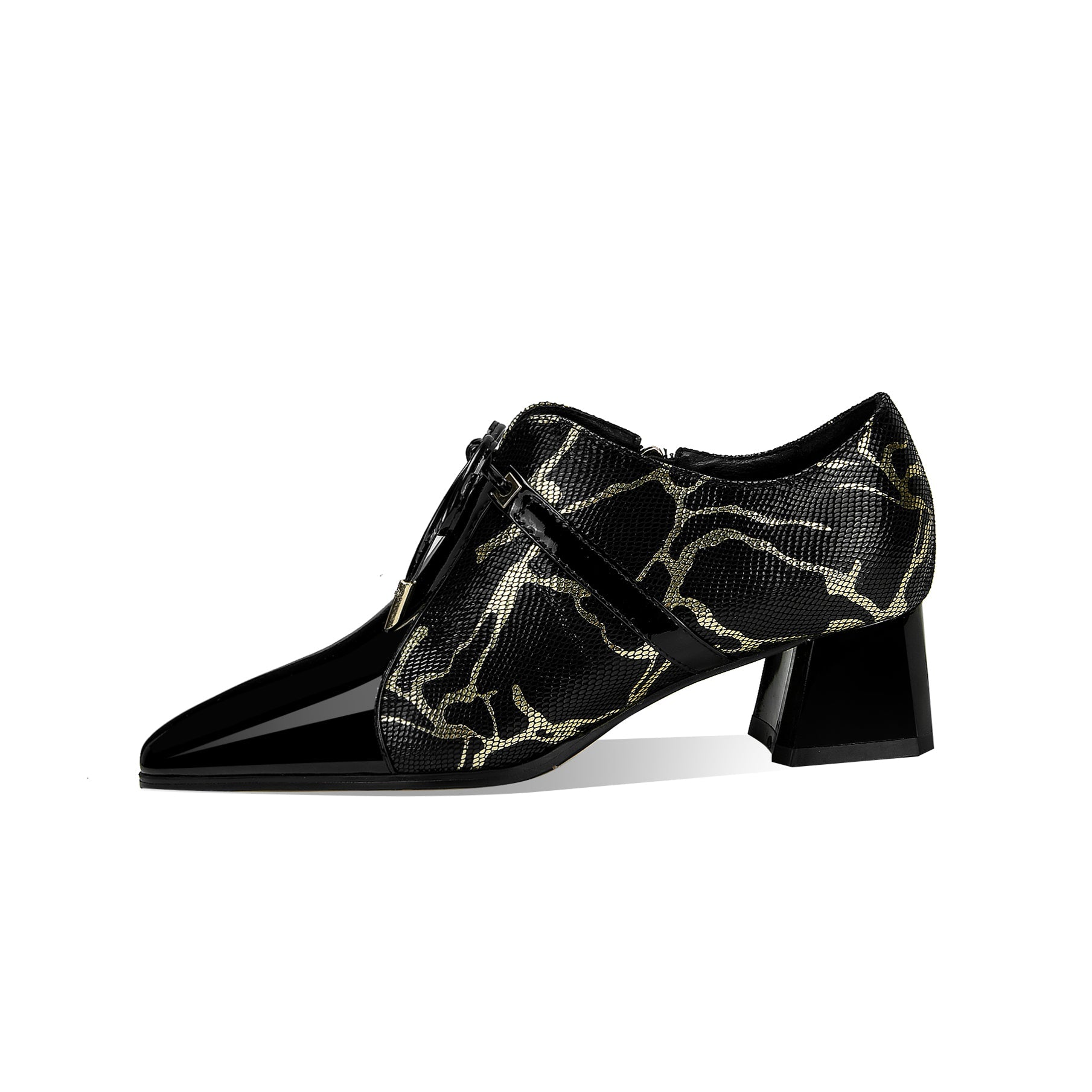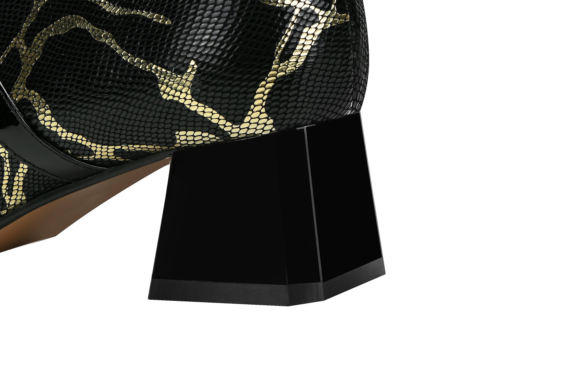 Genuine leather pumps shoes designed with pointed toe, side zipper and low chunky heels can go with almost all your outfits.