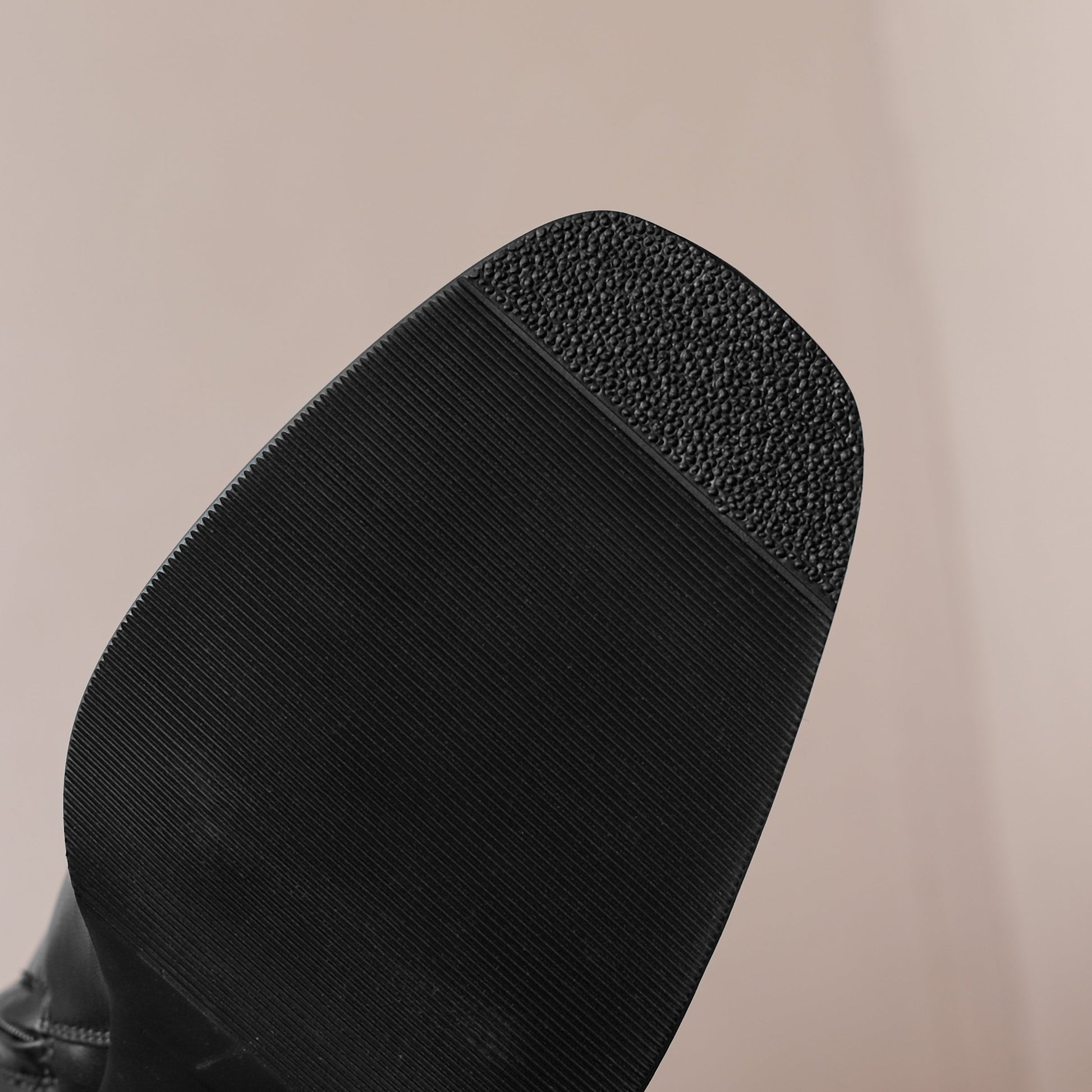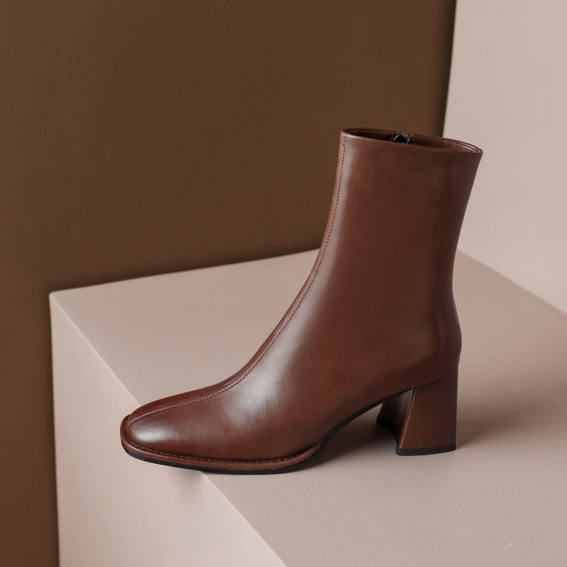 Nine Seven Handmade Women's Genuine Leather Sexy Square Toe Mid Block Heel Side Zipper Casual