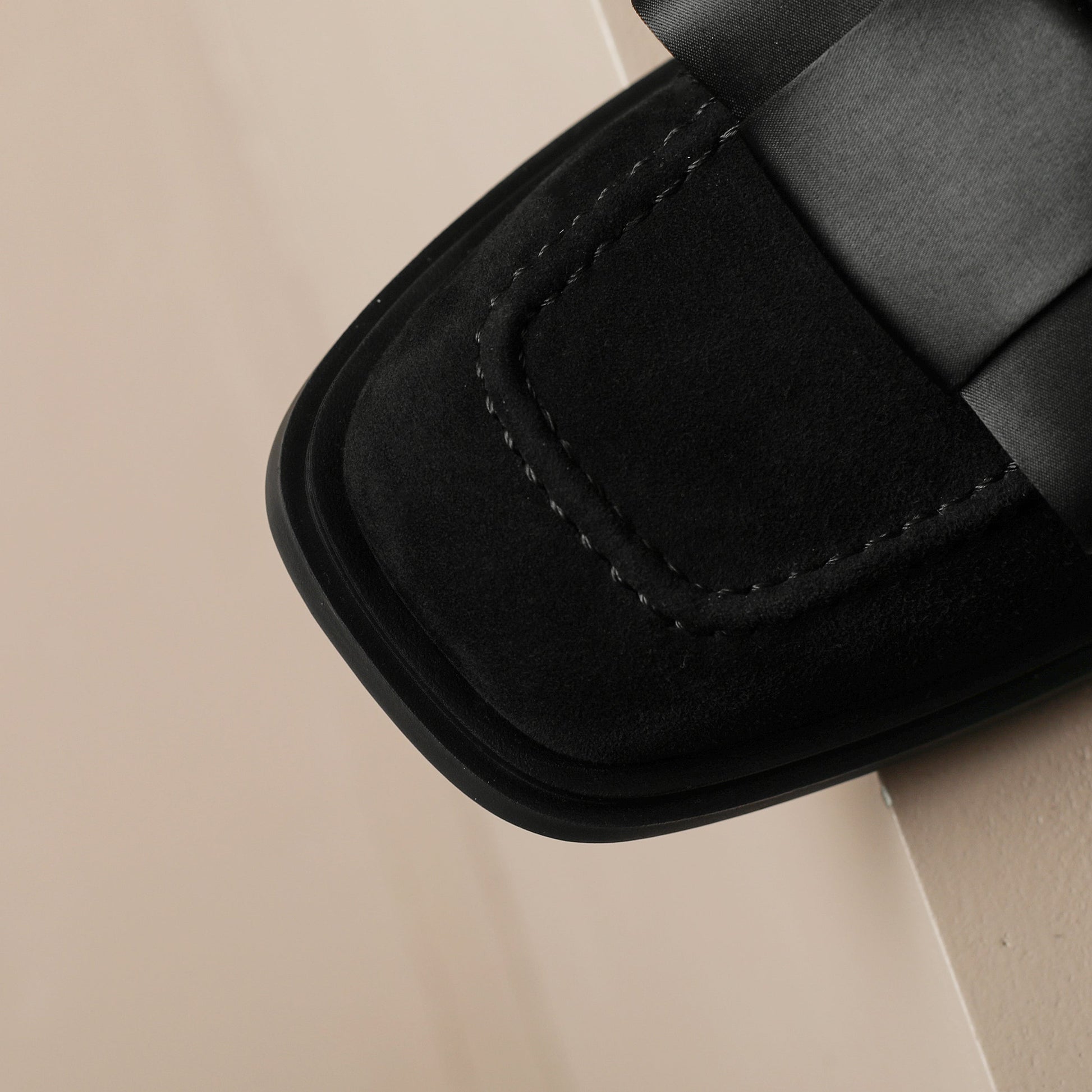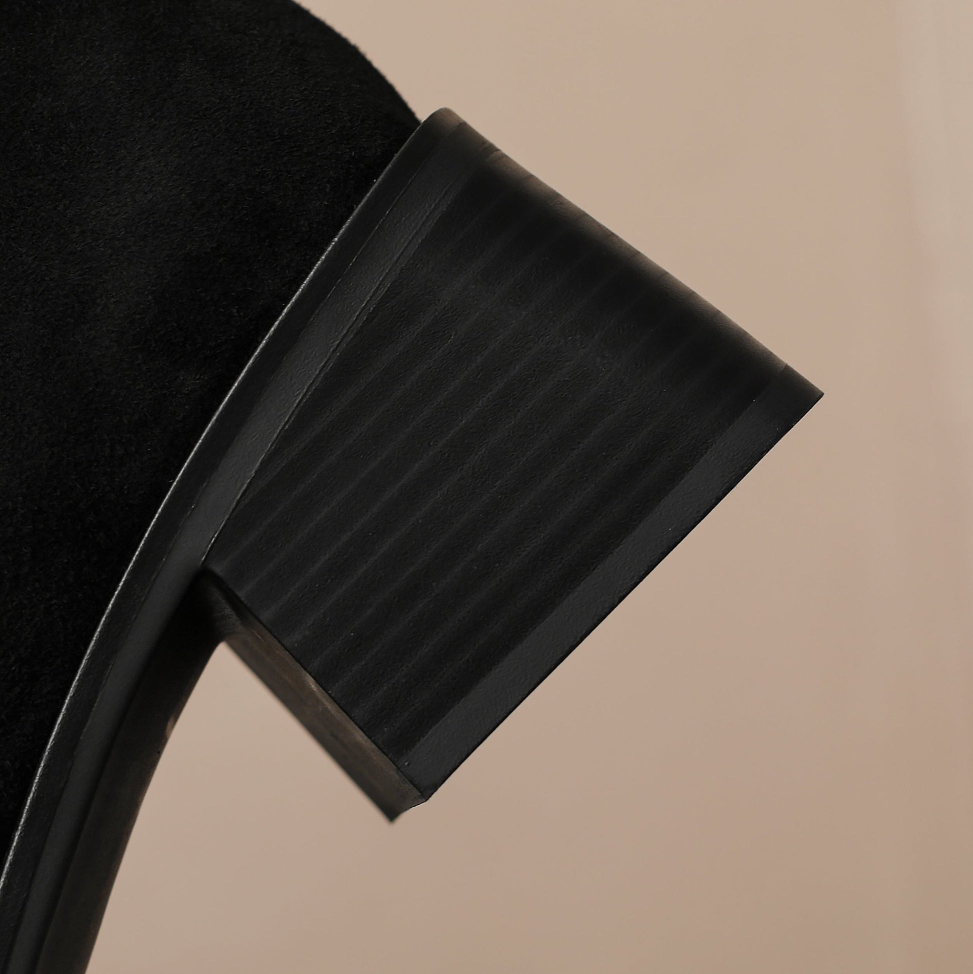 Nine Seven Handmade Women's Suede Leather Bow Décor Comfort Square Toe Side Zipper Mid Block Heel Ankle Boots Shoes