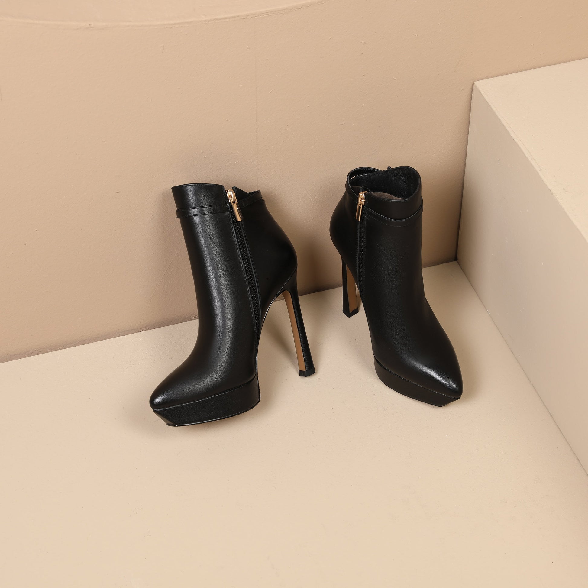 Nine Seven Handmade Women's Genuime Leather Ankle Strap Pearl Platform Side Zipper Pointed Toe High Stiletto Heel Ankle Boots