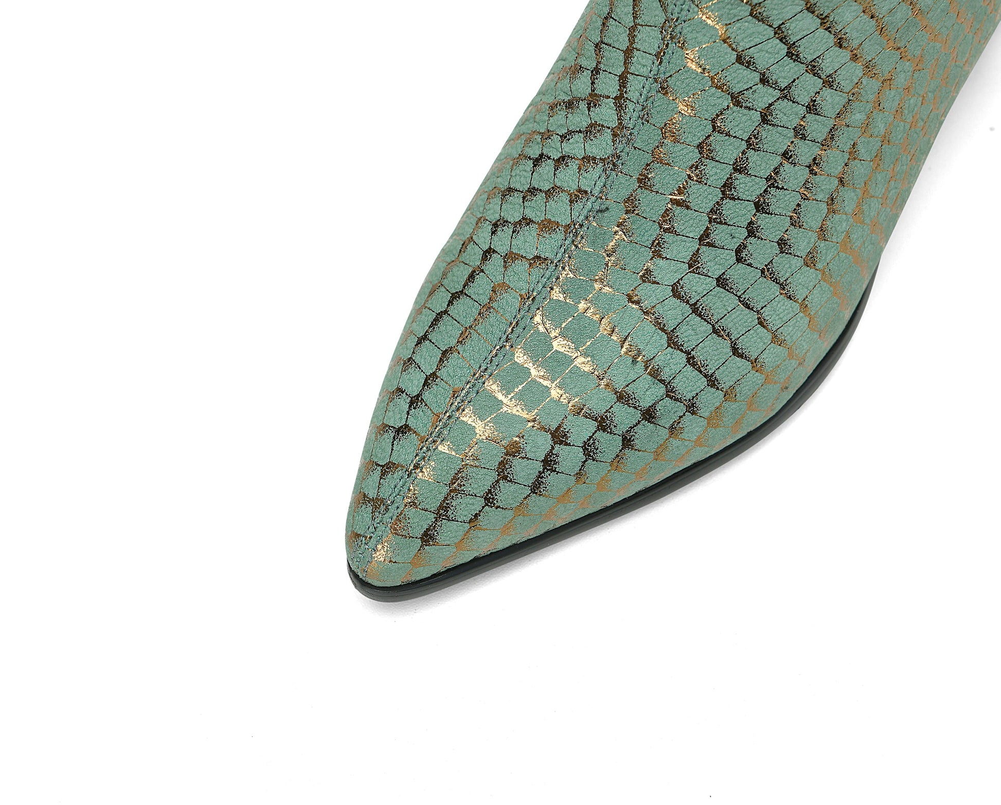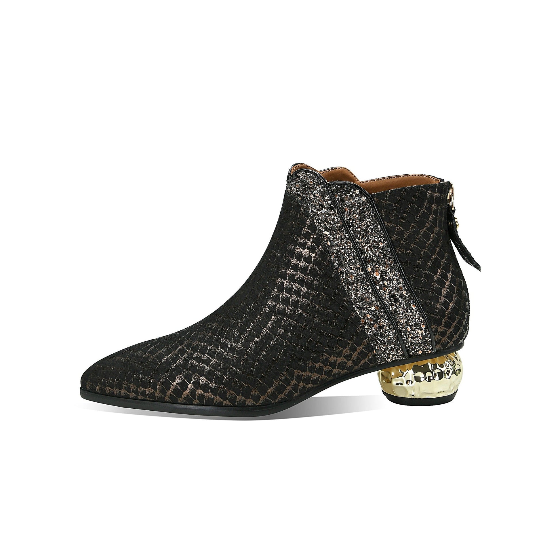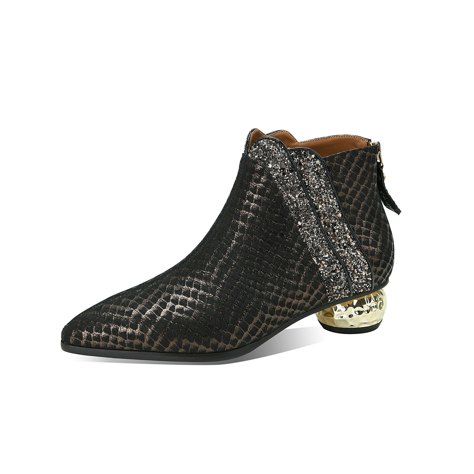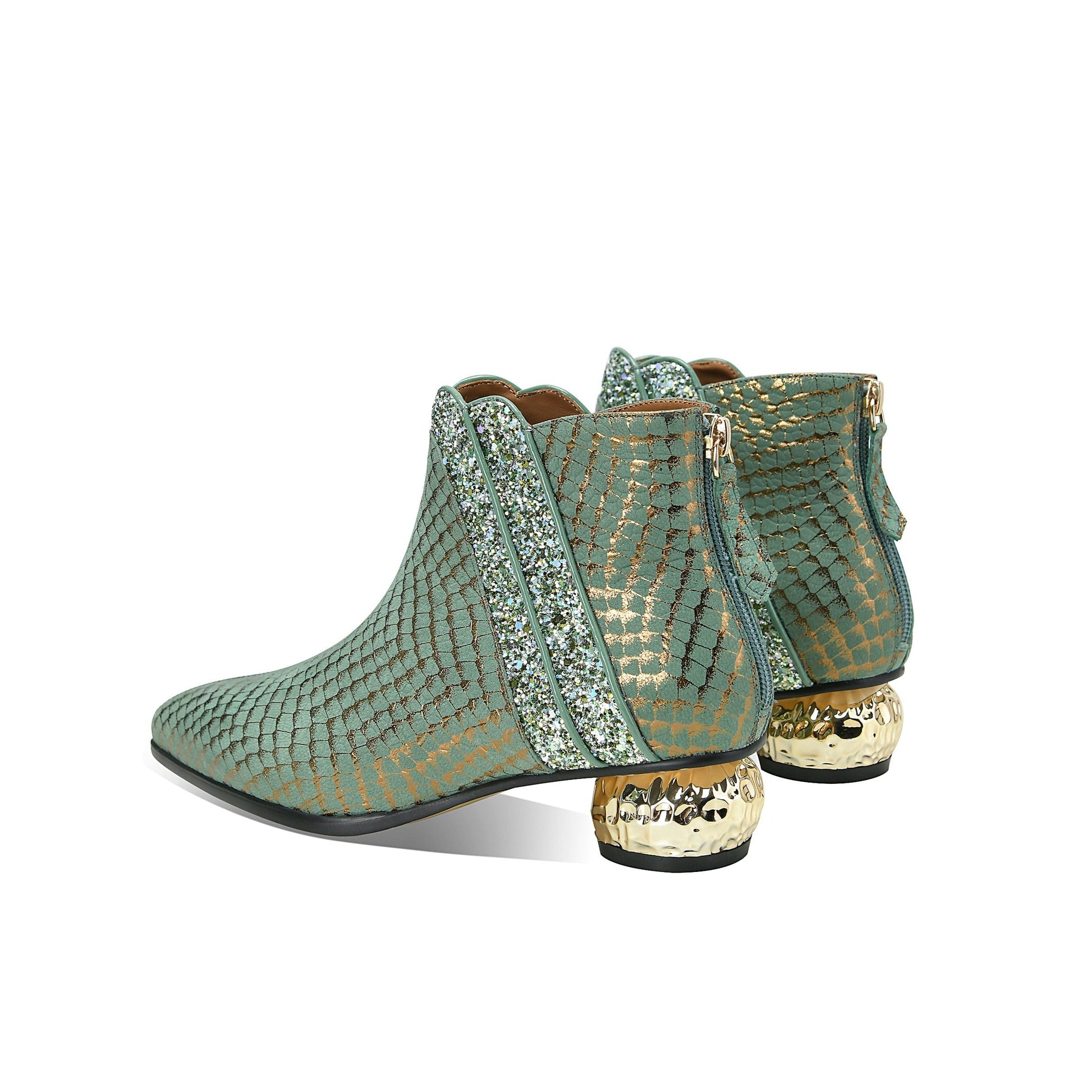 Stylish ankle boots designed with pointed toe, genuine leather, back zipper and low chunky heels can make you feel comfortable with every steps.