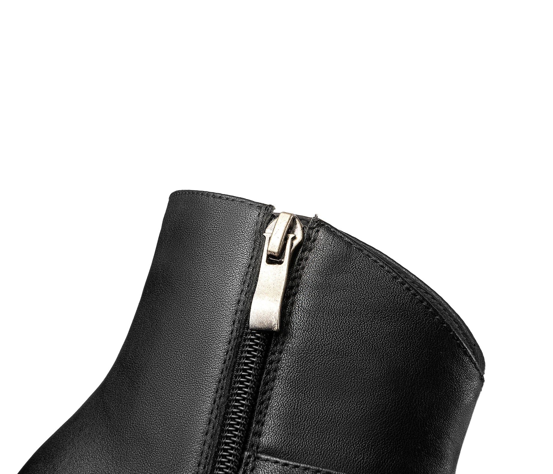 Nine Seven Handmade Women's Genuine Leather Buckle Décor Square Toe Side Zipper Mid Chunky Heel Ankle Boots