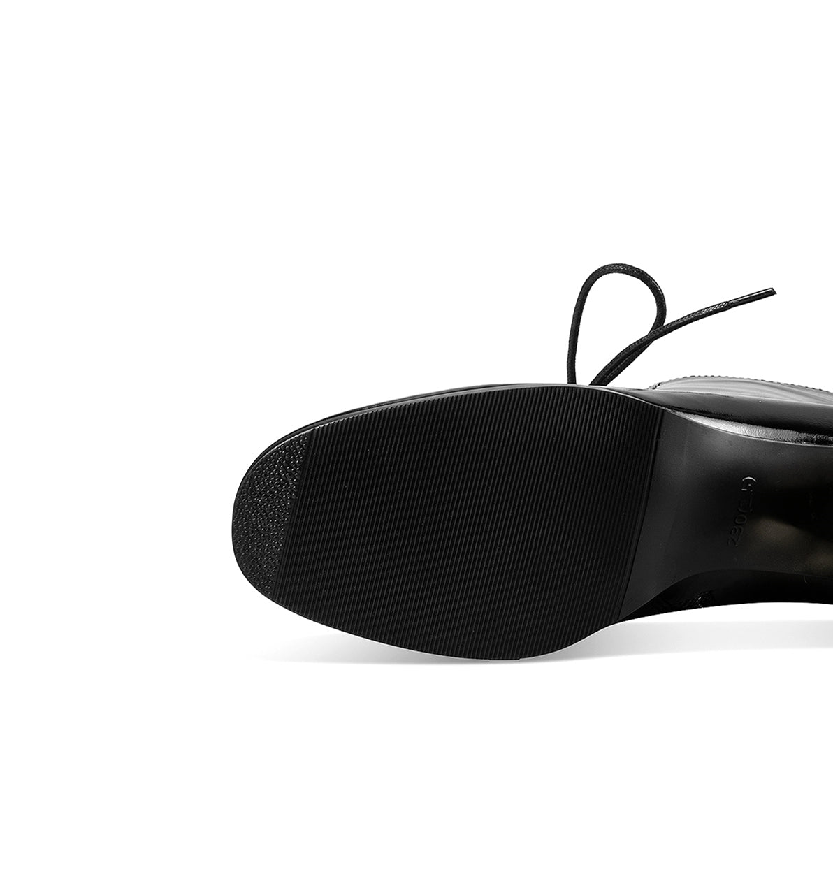 Nine Seven Handmade Women's Patent Leather Rhinestone Front Lace Up Round Toe Side Zipper Mid Chunky Heel Ankle Boots