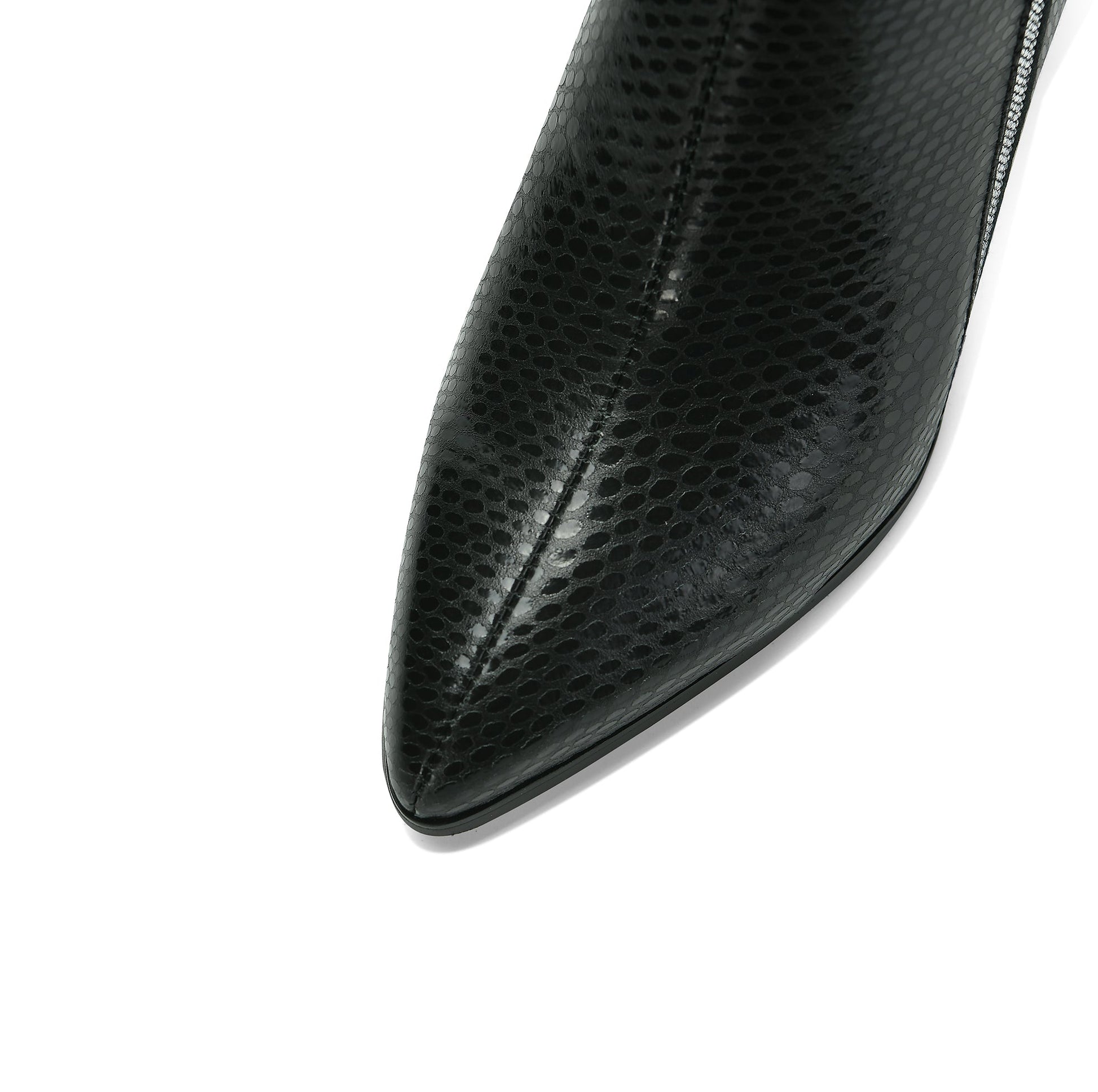 Nine Seven Handmade Women's Genuine Leather Printed Glossy Side Zipper Pointed Toe Mid Chunky Heel Ankle Boots