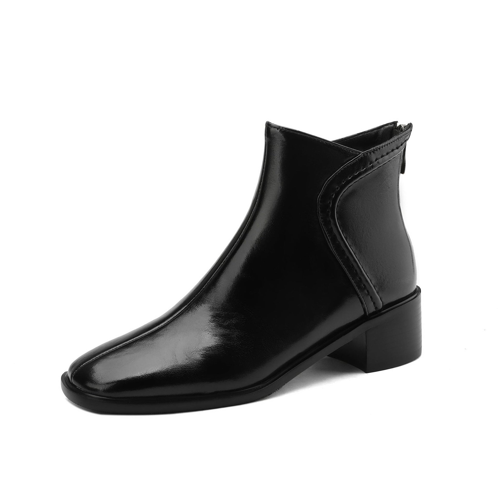 Retro ankle boots designed with genuine leather, square toe, back zipper and low chunky heels can go with almost all your outfits.