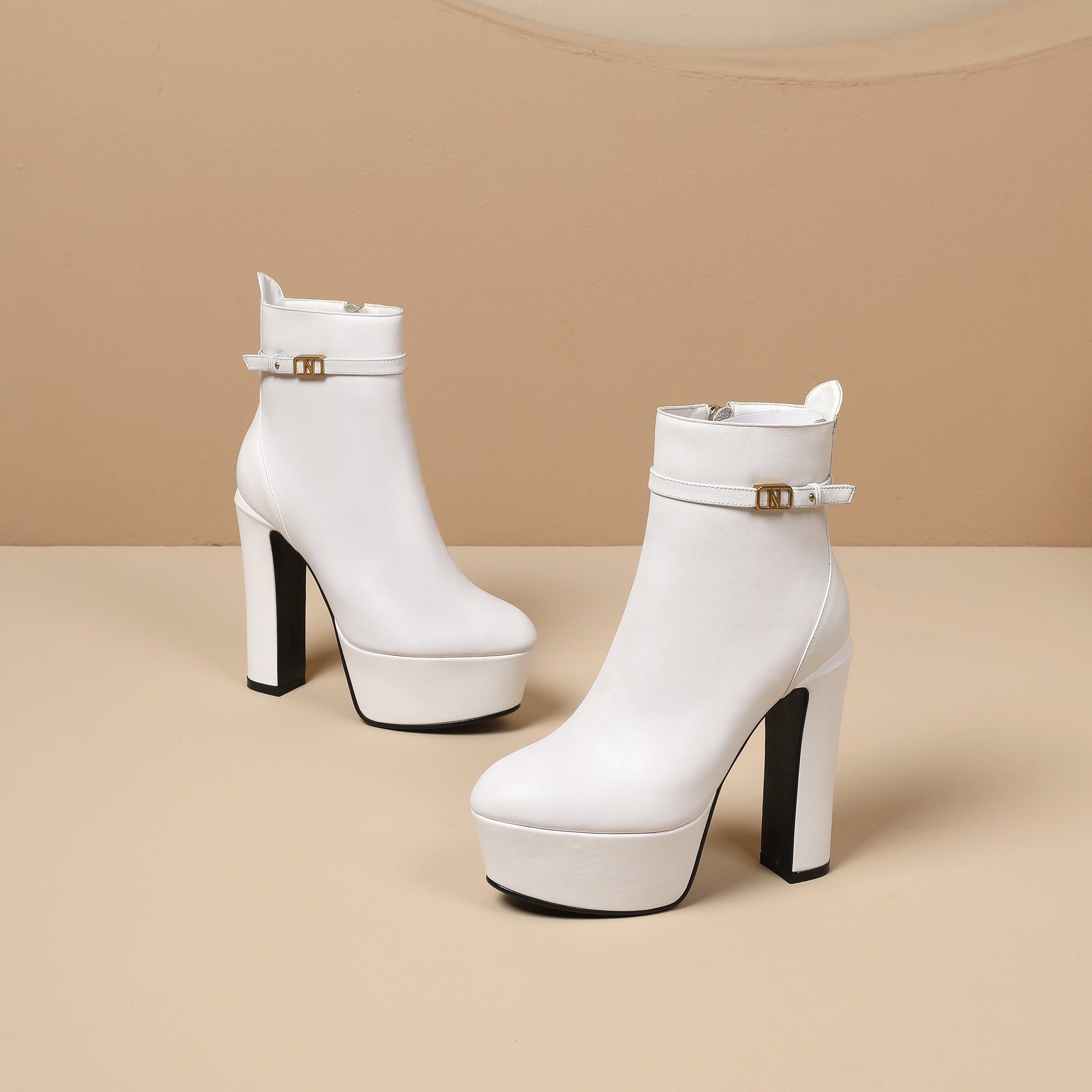 Nine Seven Handmade Women's Genuine Leather Fashion Side Zipper Pointed Toe High Heel Sexy Platform Boots