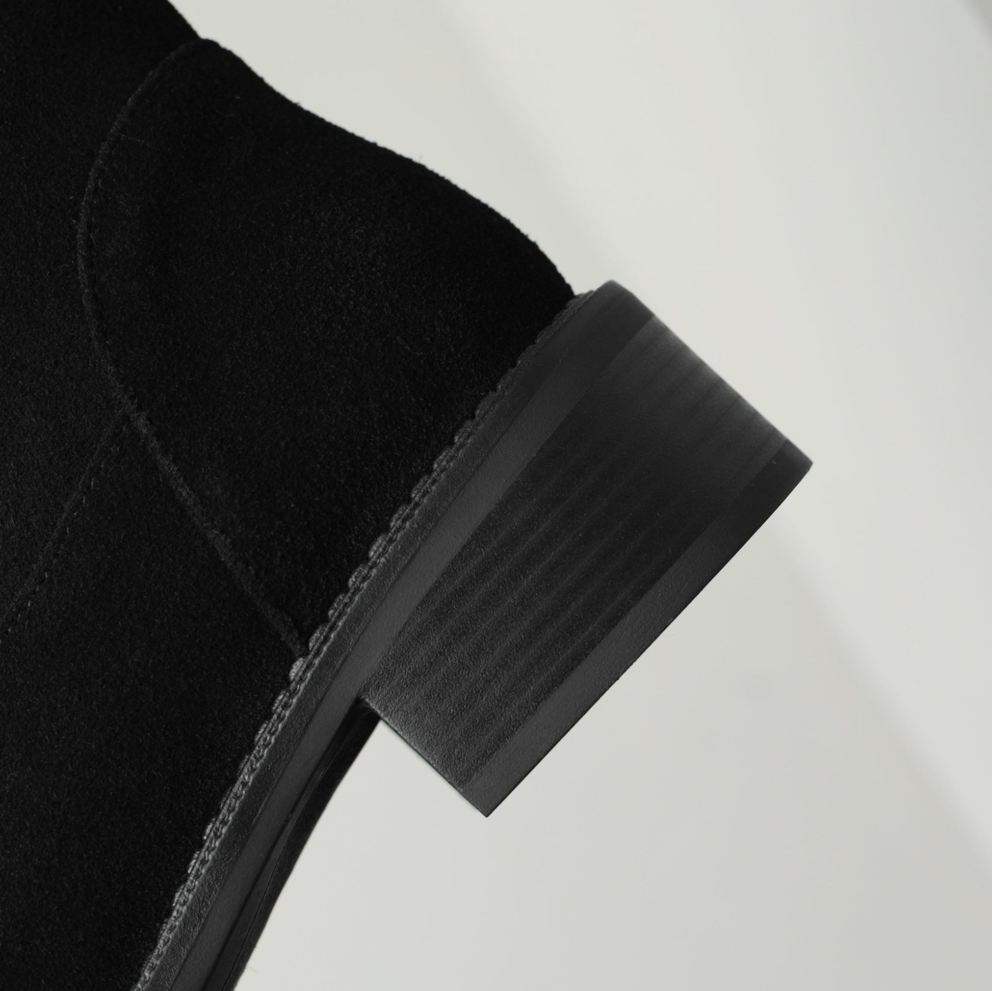 Nine Seven Women's Round Toe Suede Leather Handmade Side Zipper Low Chunky Heels Casual Mid-Calf Boots