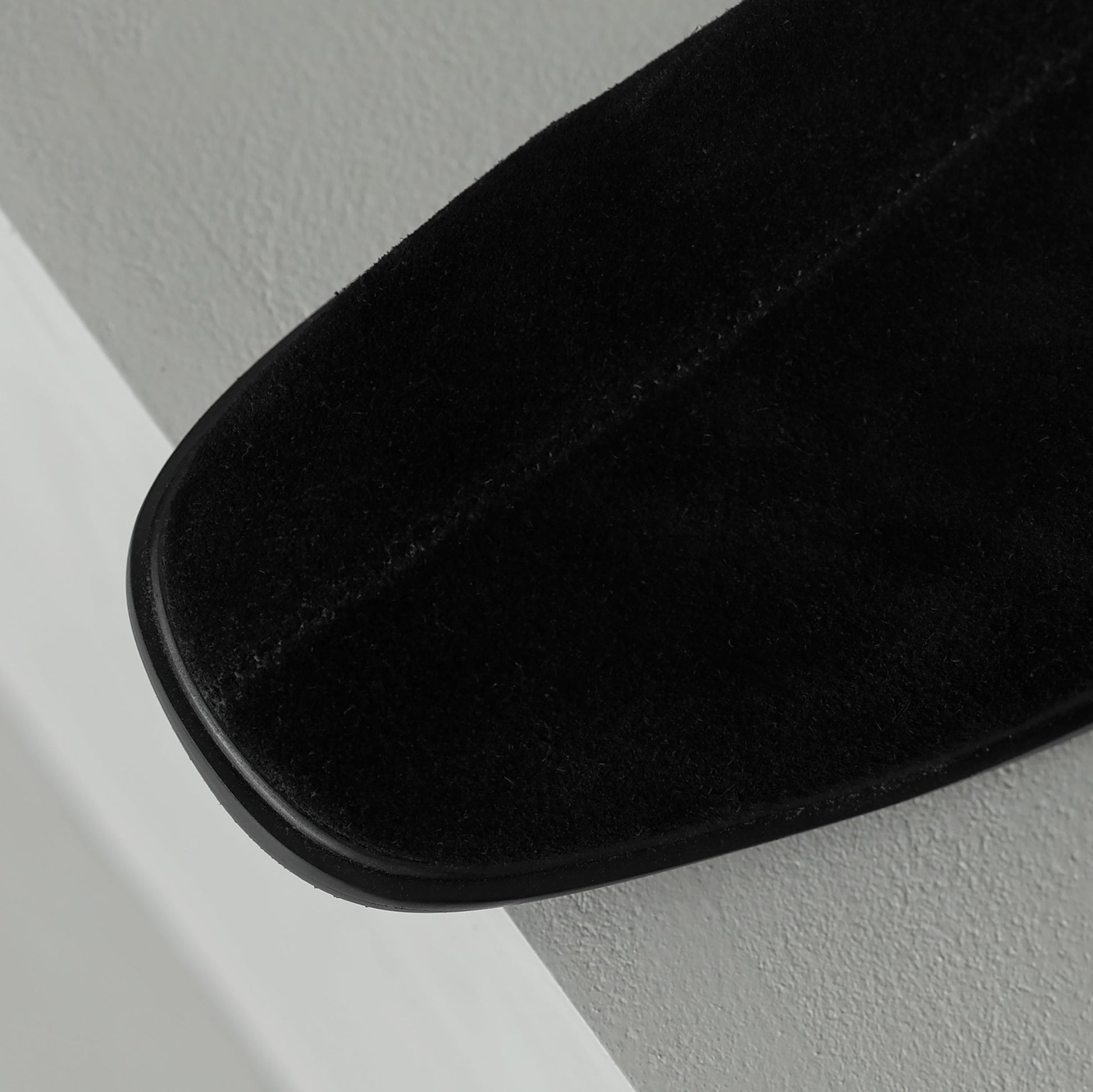 Nine Seven Women's Square Toe Suede&Genuine Leather Hnadmade Back Zipper Low Chunky Heels Casual Mid Calf Boots