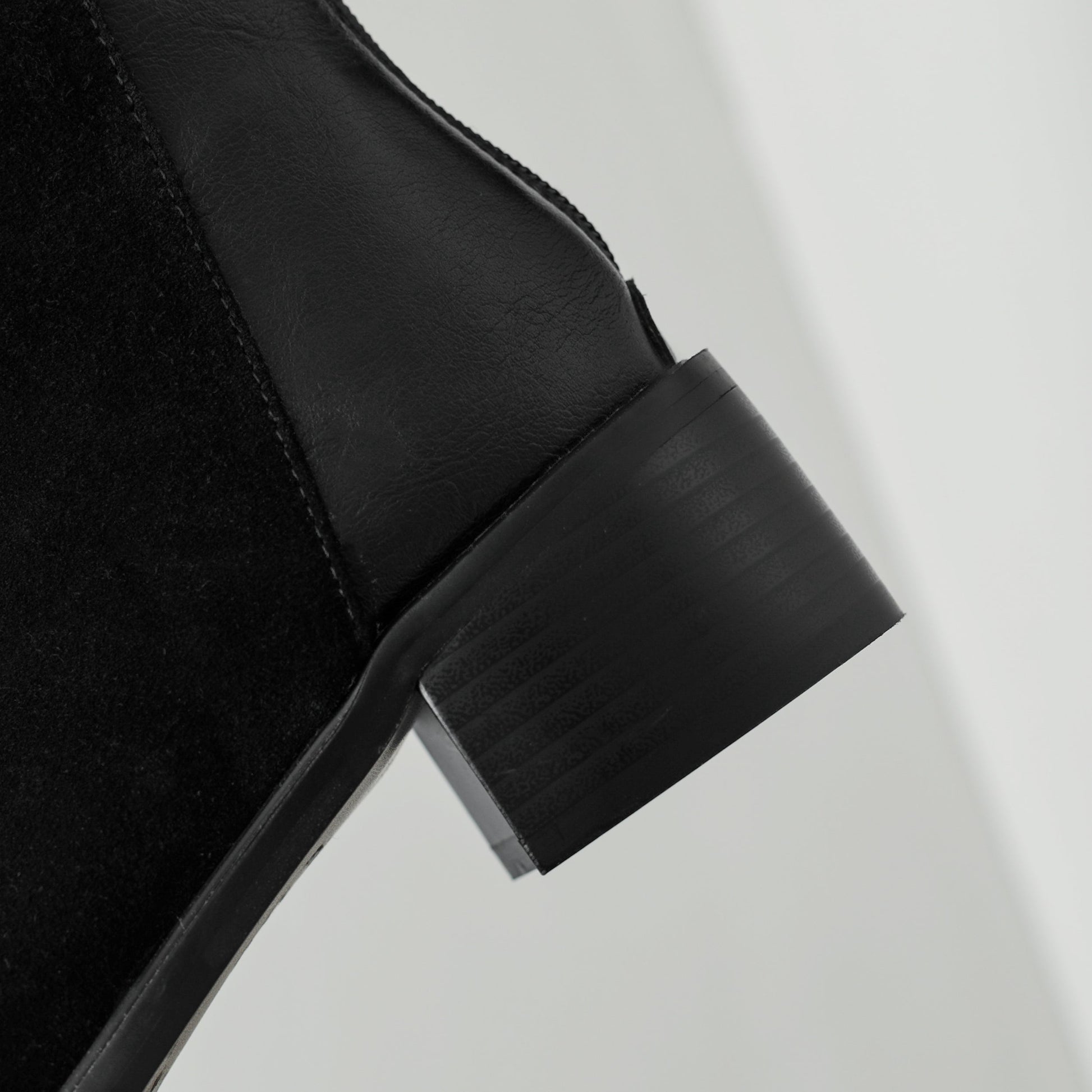 Retro ankle boots designed with suede leather, genuine leather, square toe, back zipper and low chunky heels can make you feel comfortbale with every steps.