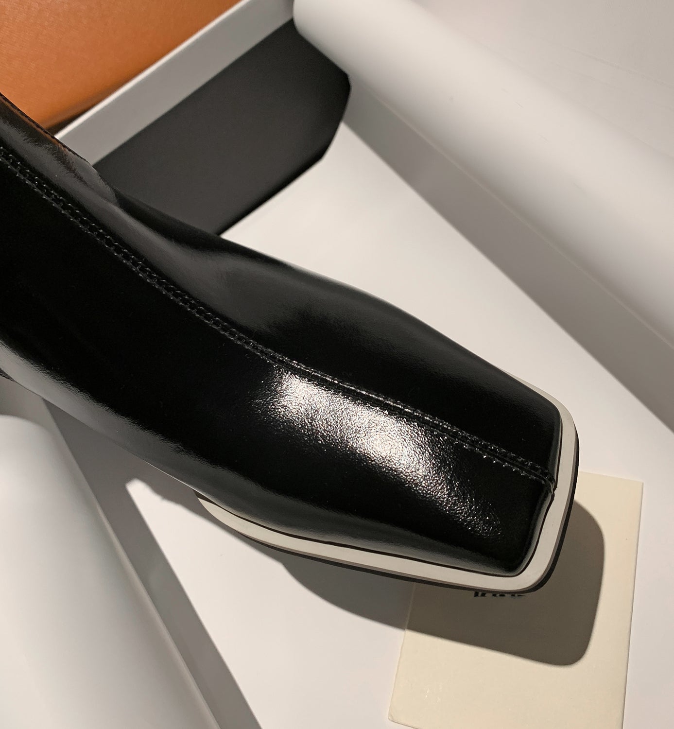 Genuine leather ankle boots designed with square toe, side zipper and stiletto mid heels can go with almost all your outfits.