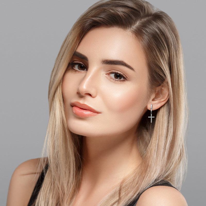These tasteful dangle drop design cross earrings is a classic piece of jewelry for any woman, perfect for any occasion.