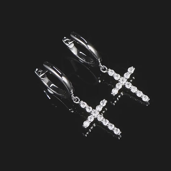 Cross Earrings 925 Sterling Silver Moissanite for Women Cross Dangle Drop Jewelry Christian Baptism Gift