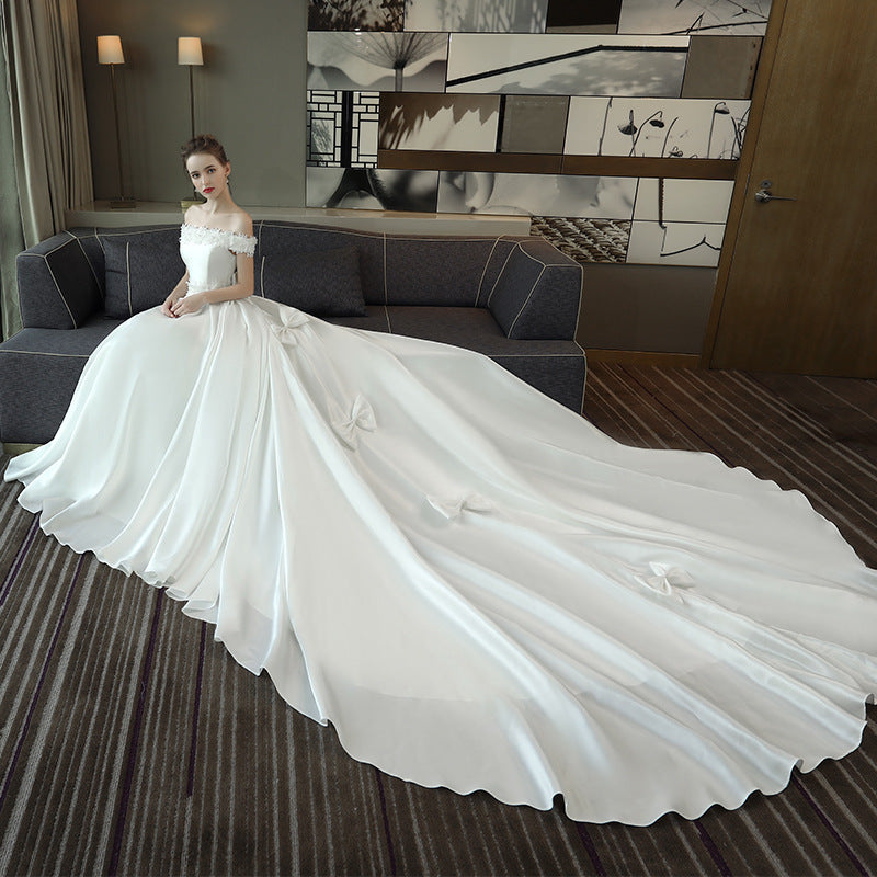 Nine Seven Off Shoulder Lace Flower Bowknot Decor A-Line Red Wedding Dress