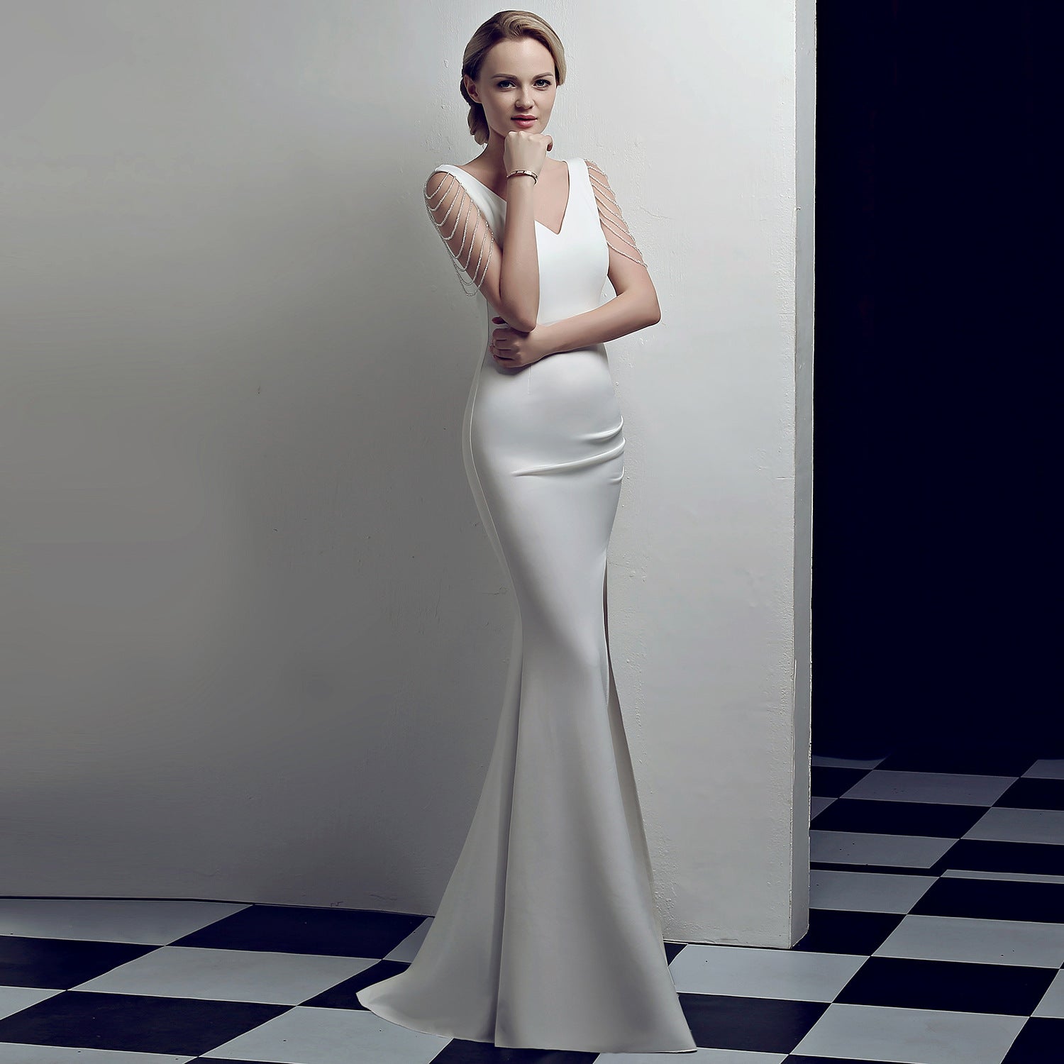 Nine Seven Women's Deep V Neck Back Zip Up Mermaid Sexy Side Split Evening Party Formal Ocassion Dress