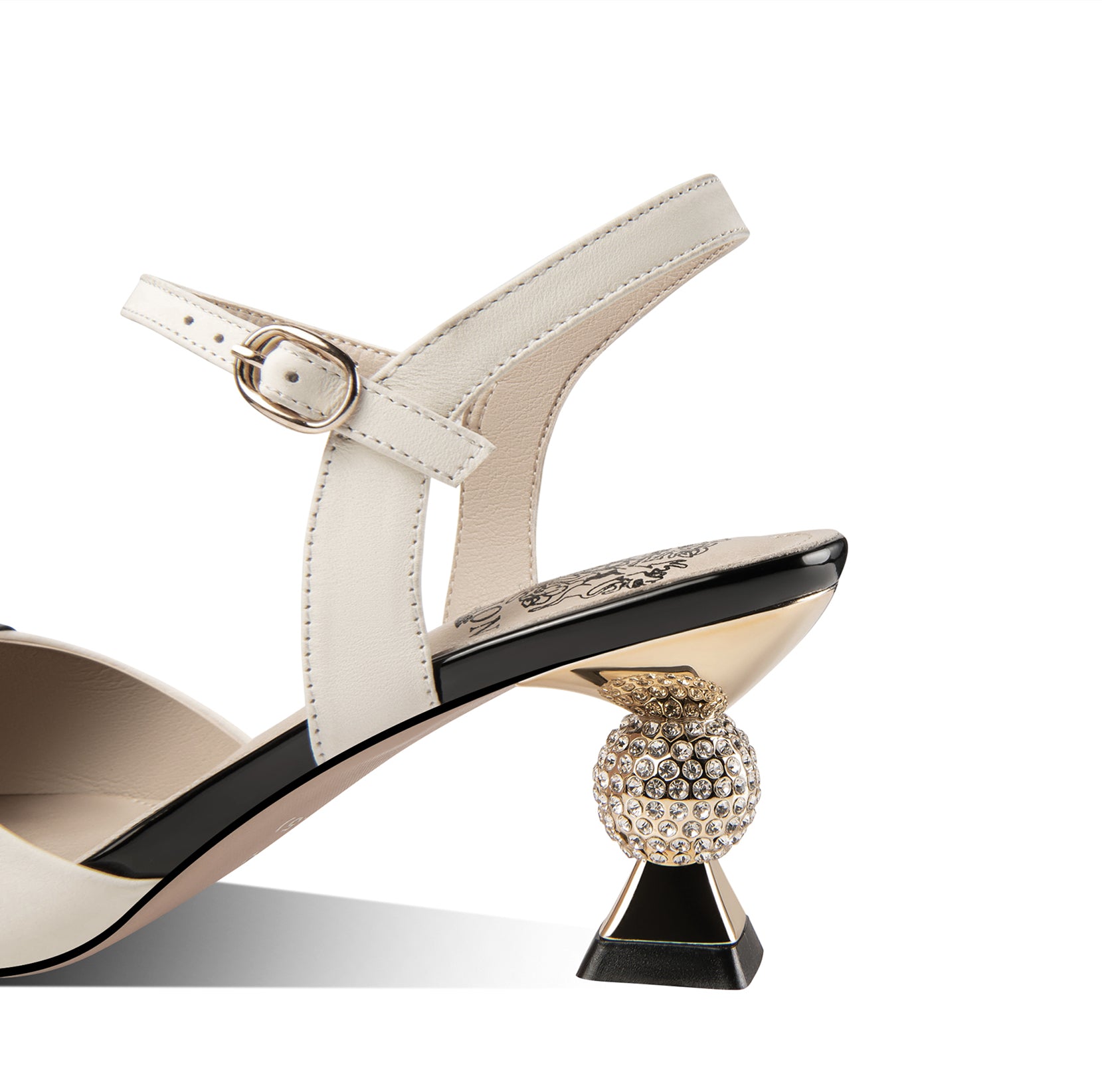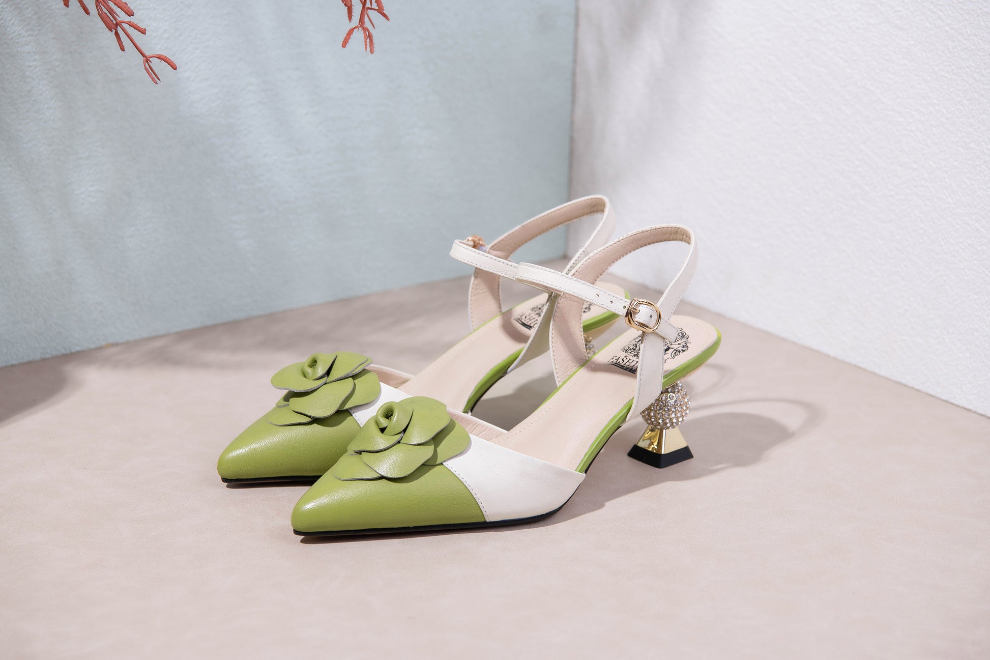 Nine Seven Genuine Leather Flower Assorted Color Handmade Women's Pointed Toe Mid Heel Buckle Sandal Shoes