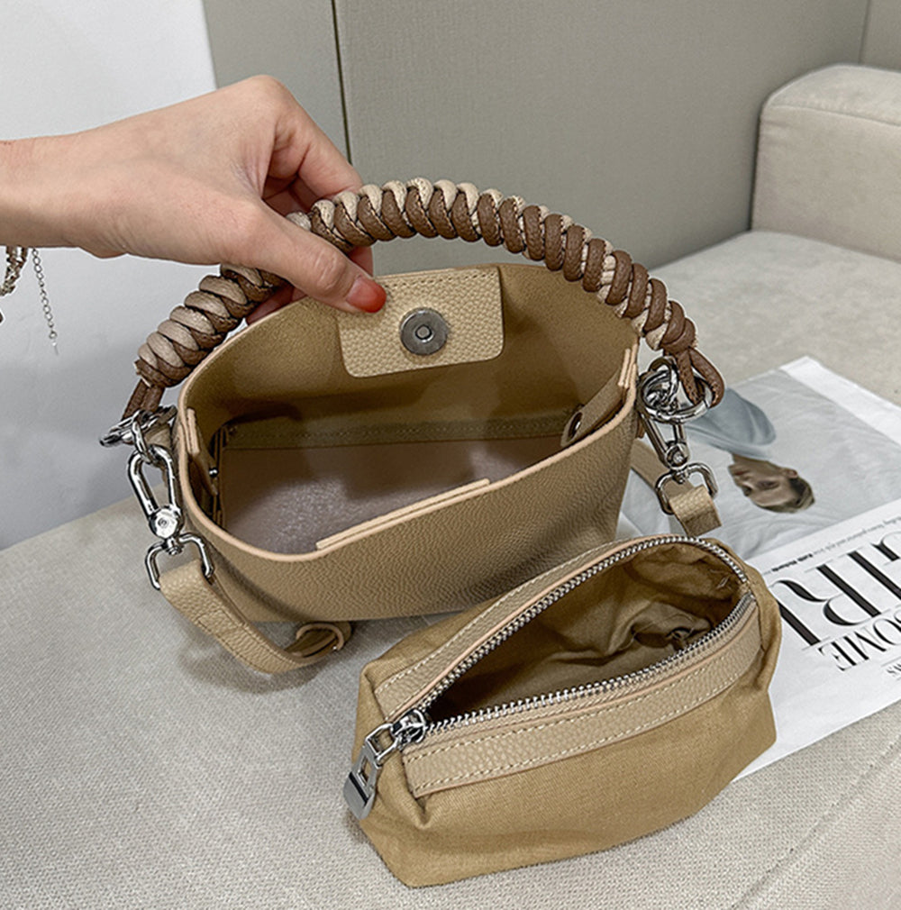 Removable and adjustable shoulder strap with interior zip up pockets.